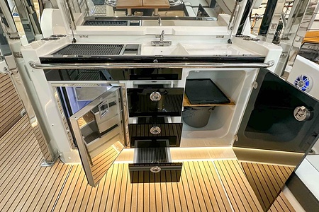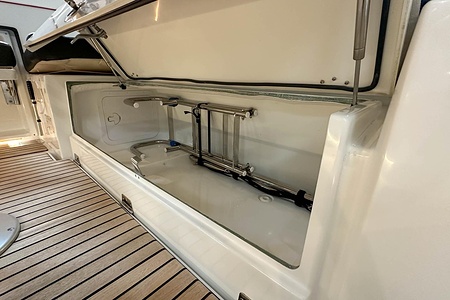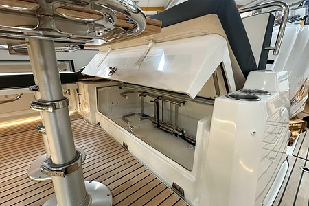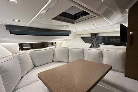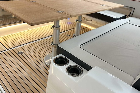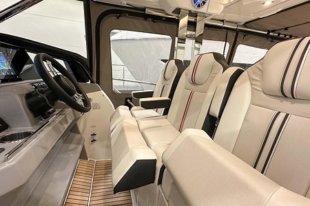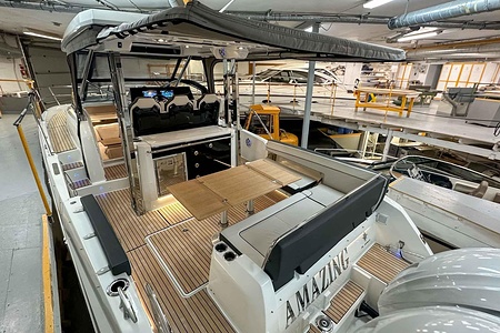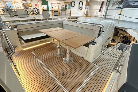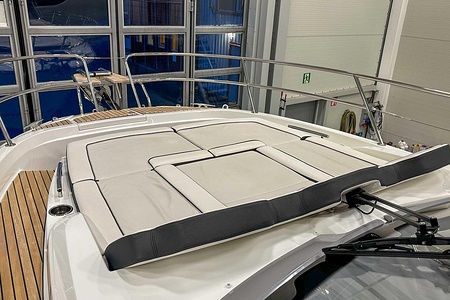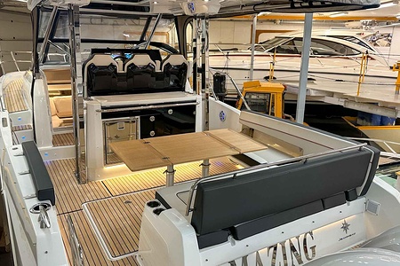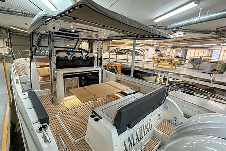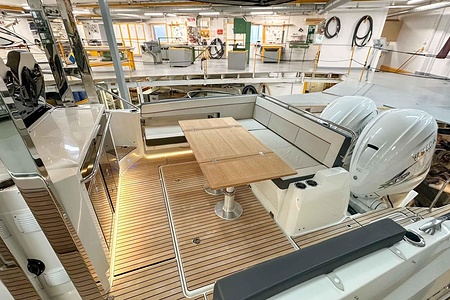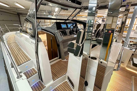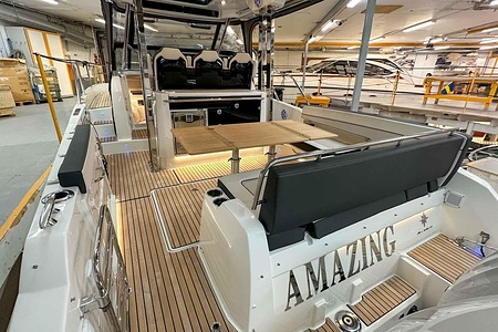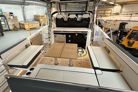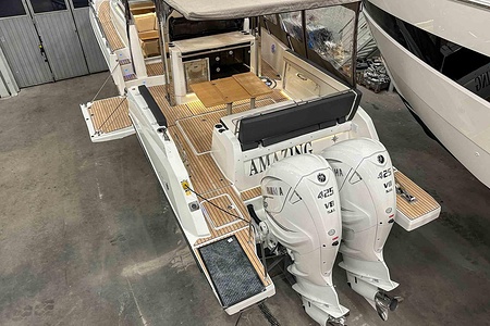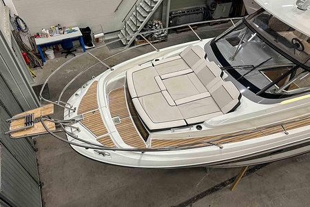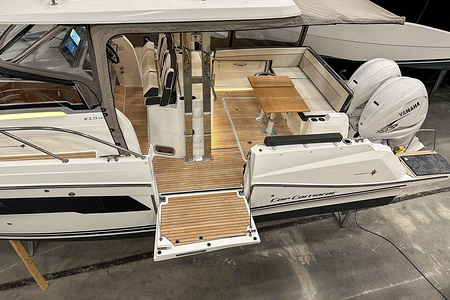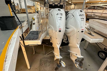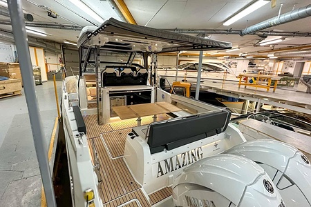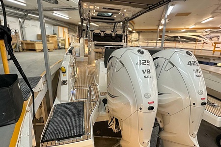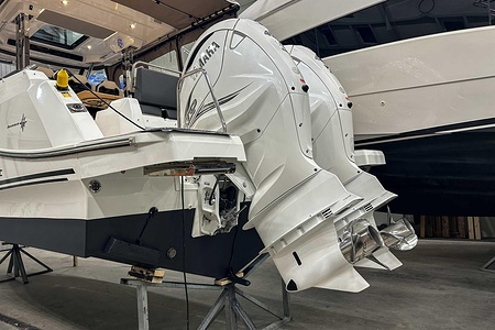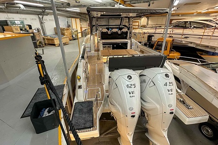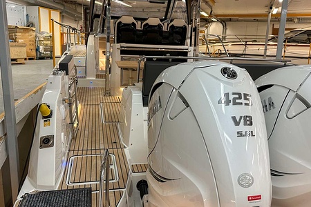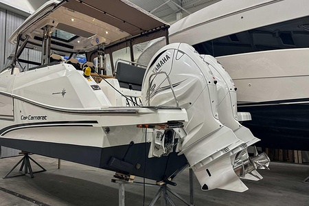 Unikt utrustad Cap Camarat 10.5 Serie2 till salu! Till skillnad från många liknande båtar ute i Europa, som ofta är utrustade med de mindre V6 300 hk-motorerna, har vår båt den ultimata drivlinan – dubbla Yamaha V8 XTO 425 hk med joystick-styrning. En kombination som gör båten till en kraftfull, följsam och trygg sjöbåt i alla förhållanden.