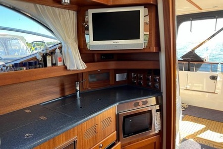 Båten är utrustad med dubbla Volvo Penta IPS 600 med joystickkörning (3 positioner – inne, flybridge och sittbrunn) samt uppdaterat DPS-system, vilket ger en mycket smidig och säker manövrering.