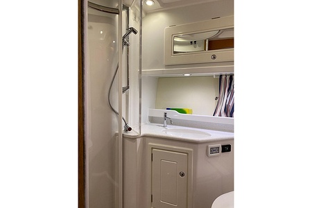 Vi har fått in en Nord West 430 SportsTop, årsmodell 2013, med IPS 600, dubbla joysticks och Dynamic Positioning System. Layout med tre dubbelkabiner plus bäddbar salong och ett badrum.