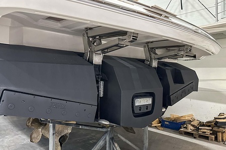 Dubbla Volvo Penta IPS 650 (2 x 480 hk) monteras som standard och inkluderar dubbla joystick och ACP-system (antikorrosionsskydd)