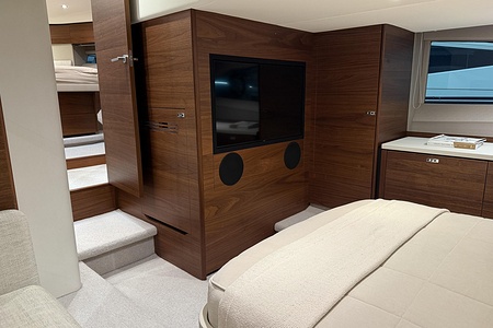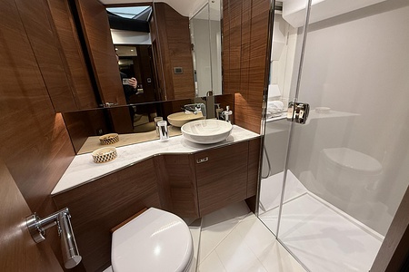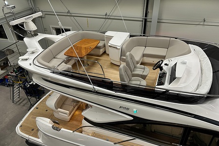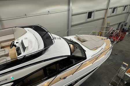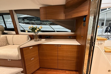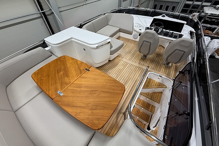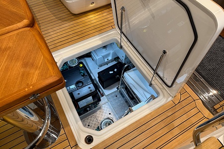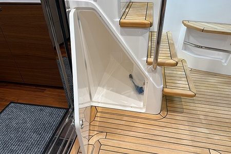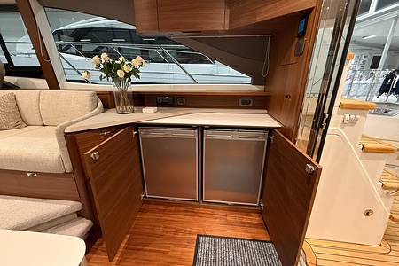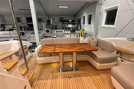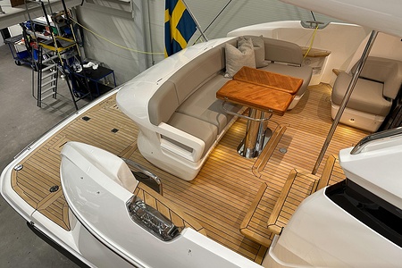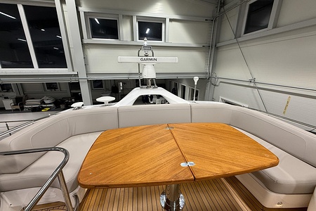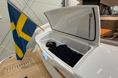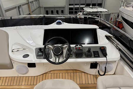 Årsmodell 2024 • Två Volvo IPS 650 (2 x 480 hk) dieselmotorer • Volvo Joystick-kontroll • Assisted Docking • Dynamic Positioning System (DPS) • Automatiskt trimsystem • Variabel bogpropeller med hold-funktion • Hydraulisk badplattform • Interiör i mattlackerad valnöt • Salong med sänkbart bord och bädddyna • Golvvärme i båda badrum • Tvättmaskin/torktumlare • Diskmaskin • Full teak • ONAN-generator • BBQ i wetbar • 4x Garmin Glass Cockpit 16-tums plottrar integrerade med Volvo autopilot • Radar • Defroster • Värmesystem