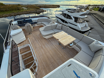 Med sina eleganta linjer, generösa flybridge och sömlösa koppling mellan inne- och utemiljö kombinerar Princess F58 praktisk funktionalitet med raffinerad lyx – och sätter en ny standard för flybridge-yachting i sin klass.
