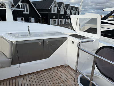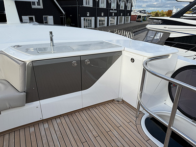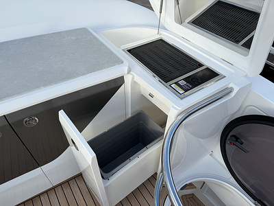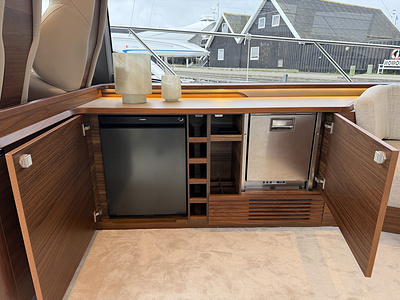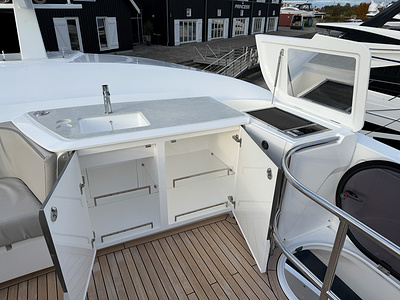 – Flybridge wetbar and cockpit servery sprayed in Oyster Grey