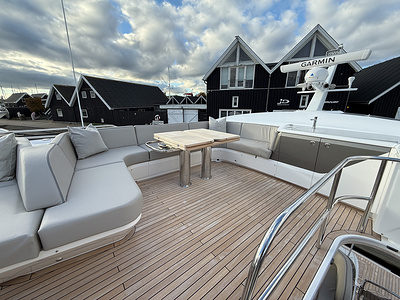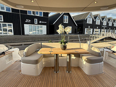 Med två MAN V8-1200 hk motorer levererar denna yacht imponerande kraft och smidig, trygg cruising.