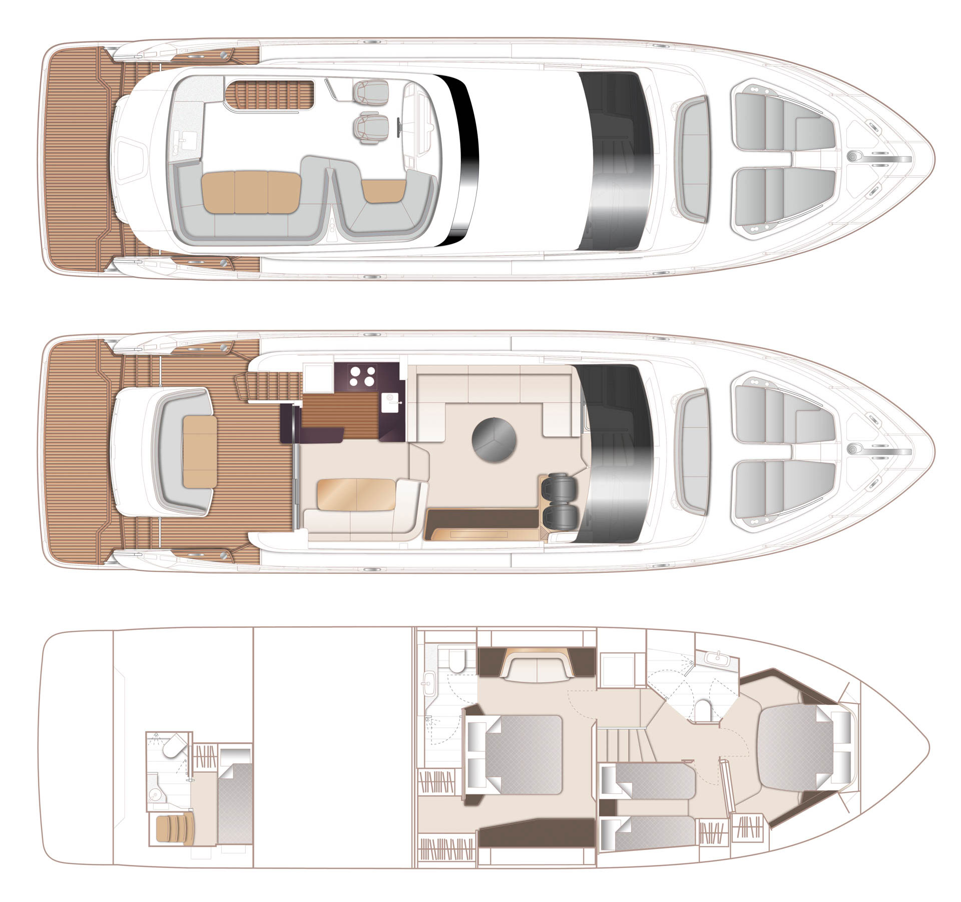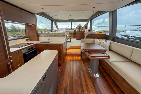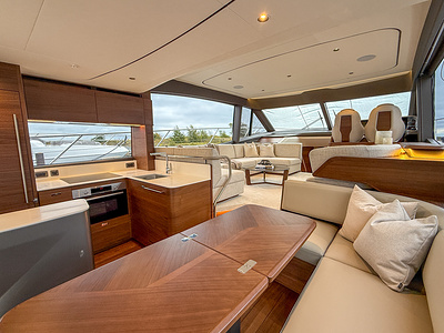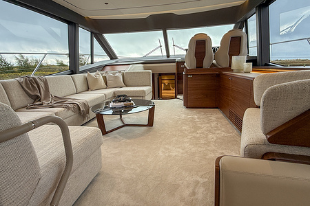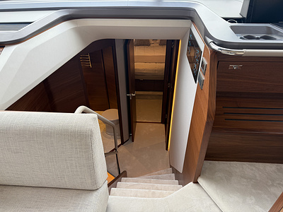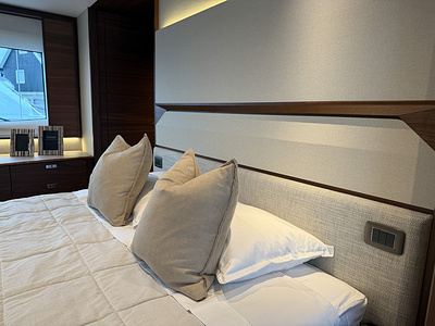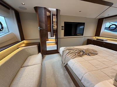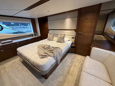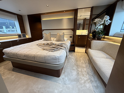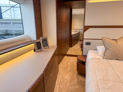 Den exklusiva interiören i mattlackerad valnöt visar Princess välkända hantverk – varm, sofistikerad och skapad för livet till sjöss. Med 4 vackert inredda kabiner och 3 rymliga badrum, inklusive en lyxig fullbredd masterkabin, erbjuder F58 utmärkt boende för familj och gäster.