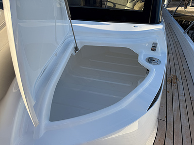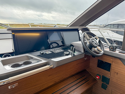 – Flybridge console sprayed in Oyster Grey