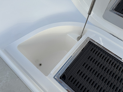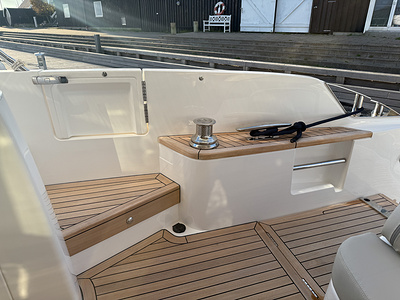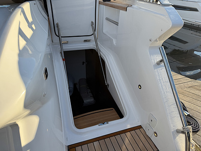 White gelcoat finish as standard (With dark grey water line, black antifouling. Hull & bathing platform fendering is white with stainless steel insert)