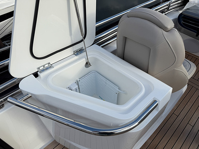 – Quilting detail with contrast accents to flybridge helm seating