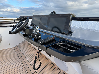 – Upgraded steering wheel to flybridge helm position