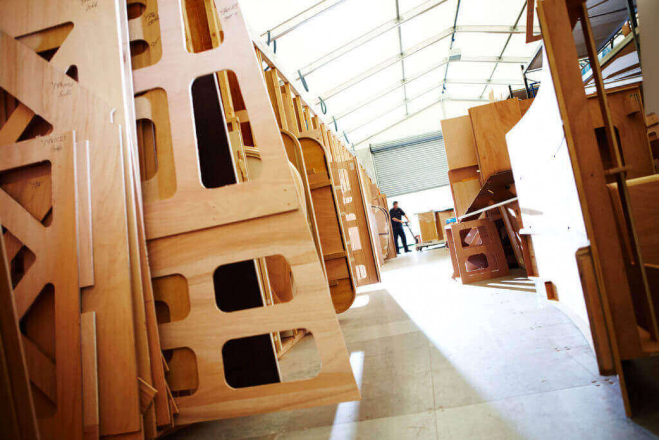 - Huvudfabrik för komponenter till båtarna såsom möbeltillverkning i snickeriet, smedja för rostfritt, kabelverkstad, mindre plastmoduler och kapell.
