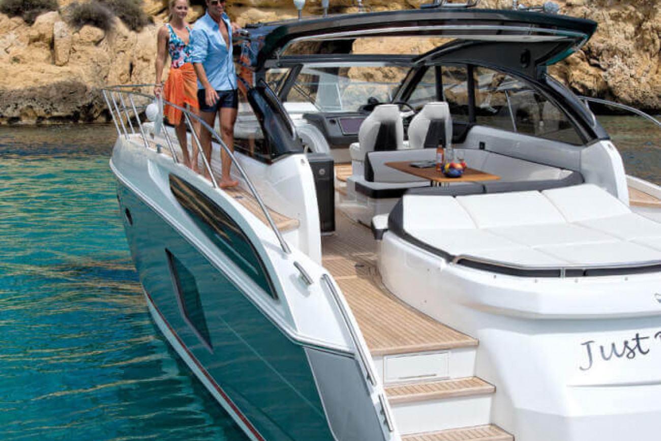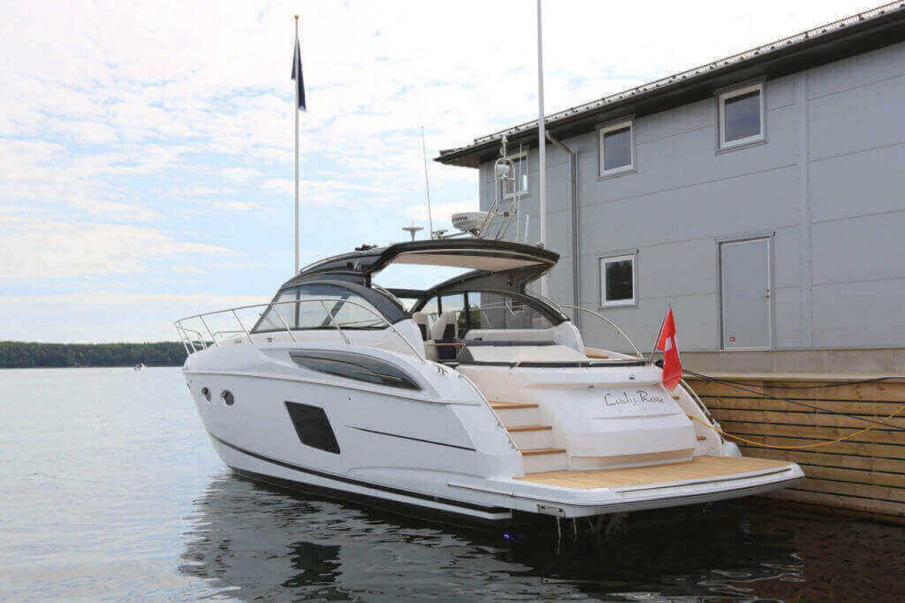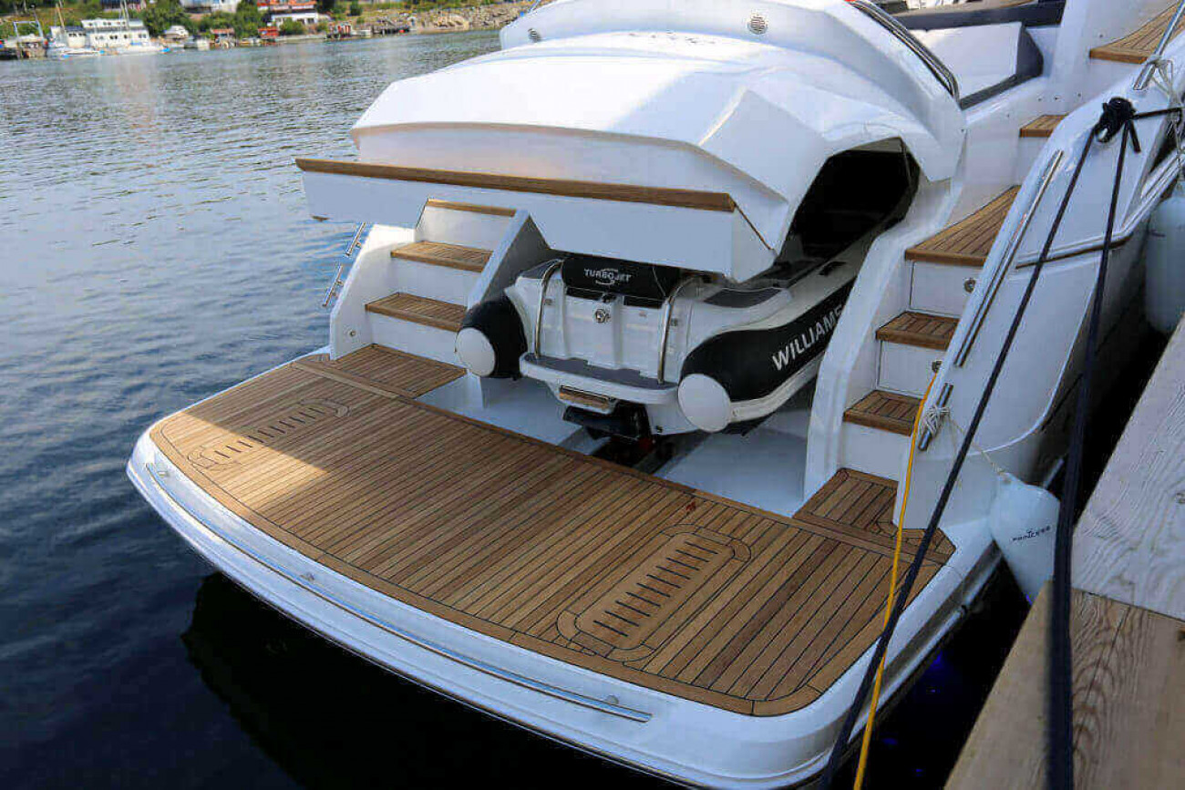 • solbädd akterut med garage (upp till 3.5m gummibåt)