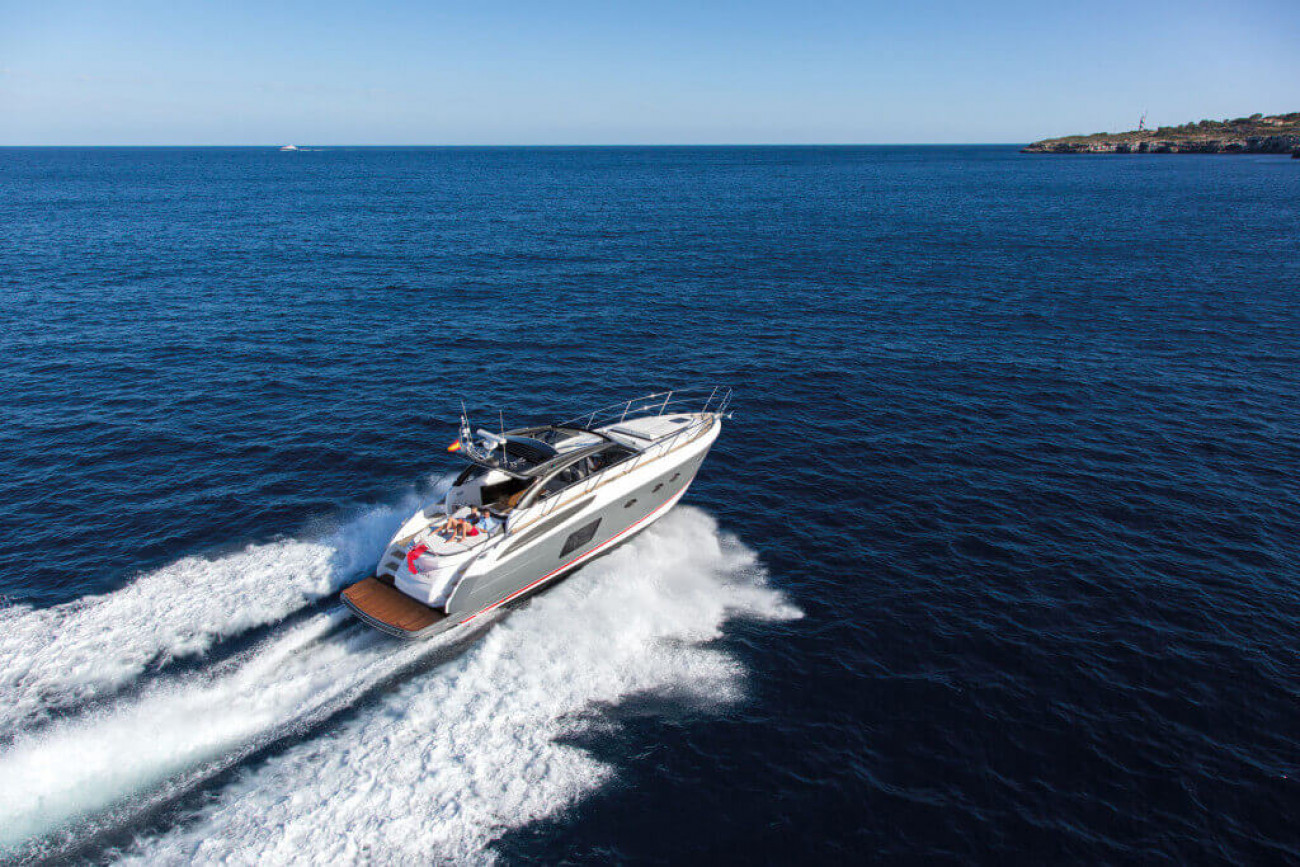 † Fart och räckvidd är uppskattade på en båt med standardutrustning och varierar beroende på skrovets renhet, akterdrevets skick, last, vatten- och lufttemperaturer, sjöförhållanden och andra faktorer. Uppskattningar ges därför i god tro men utan garanti eller några förpliktelser oss oss eller Princess Yachts International plc.