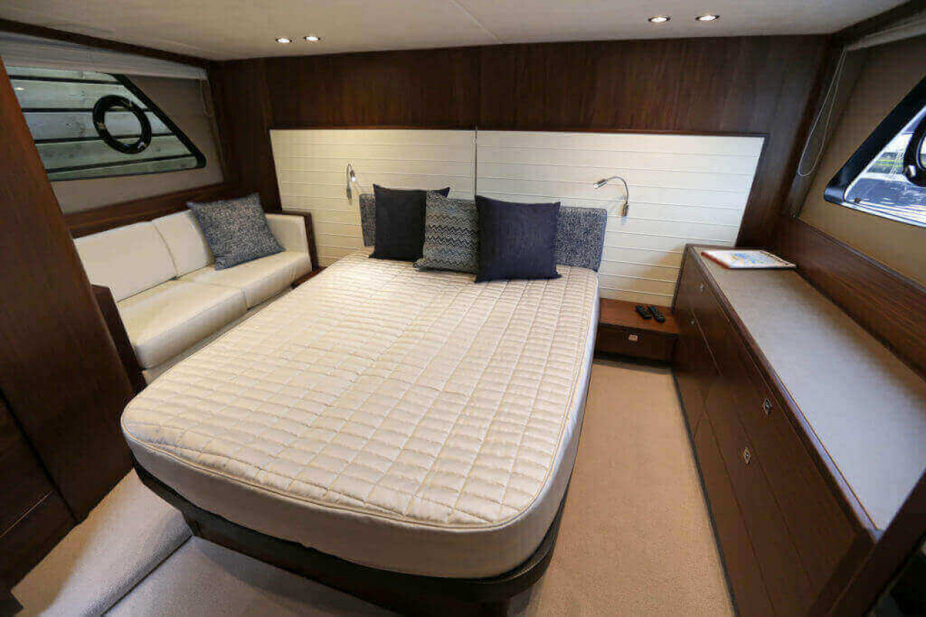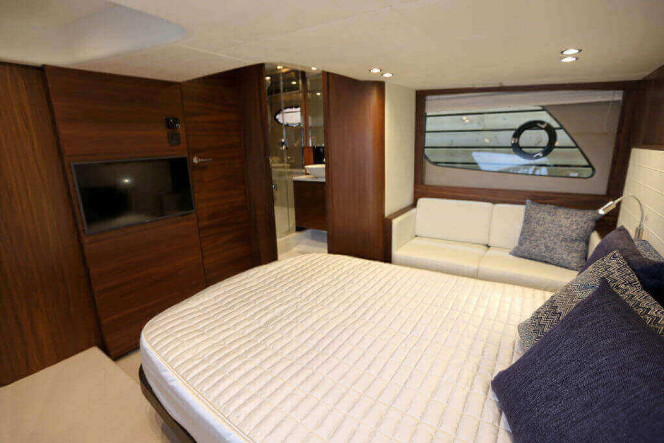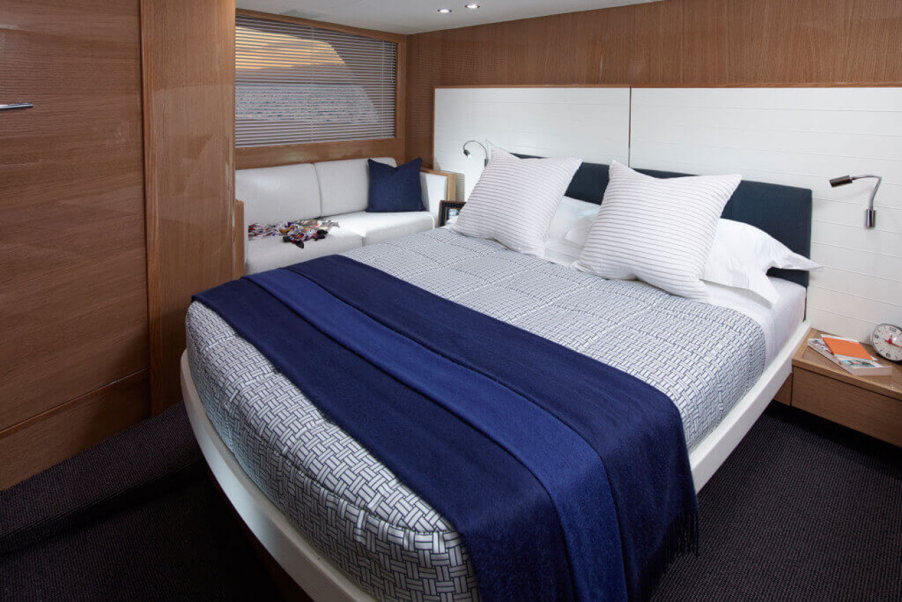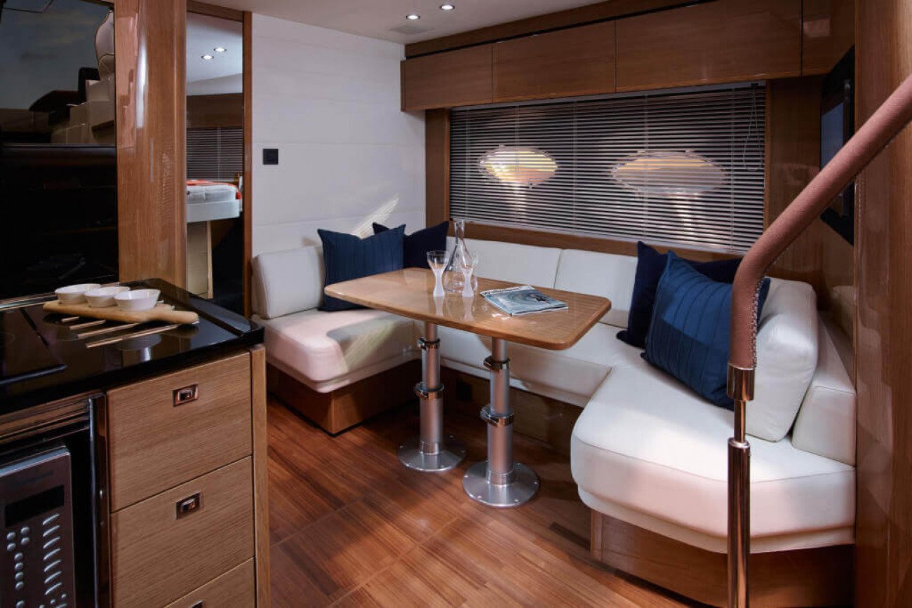 Under däck är dinetten något större än för V48:an, och kan konverteras till en tillfällig sovplats. Med en fullhöjdskyl/frys och en elektrisk mikrovågsugn plus en konventionell ugn är pentryt utrustat med det moderna kökets alla bekvämligheter. Fullbreddshytten och gästkabinen i fören, som kan utrustas med en dubbelbädd eller sinsemellan vinklade bäddar (“öppen sax”) har utsökt finish. Fullbreddsägarkabinen midskepps är fantastisk och i sig själv ett underbart utrymme att vistas i.