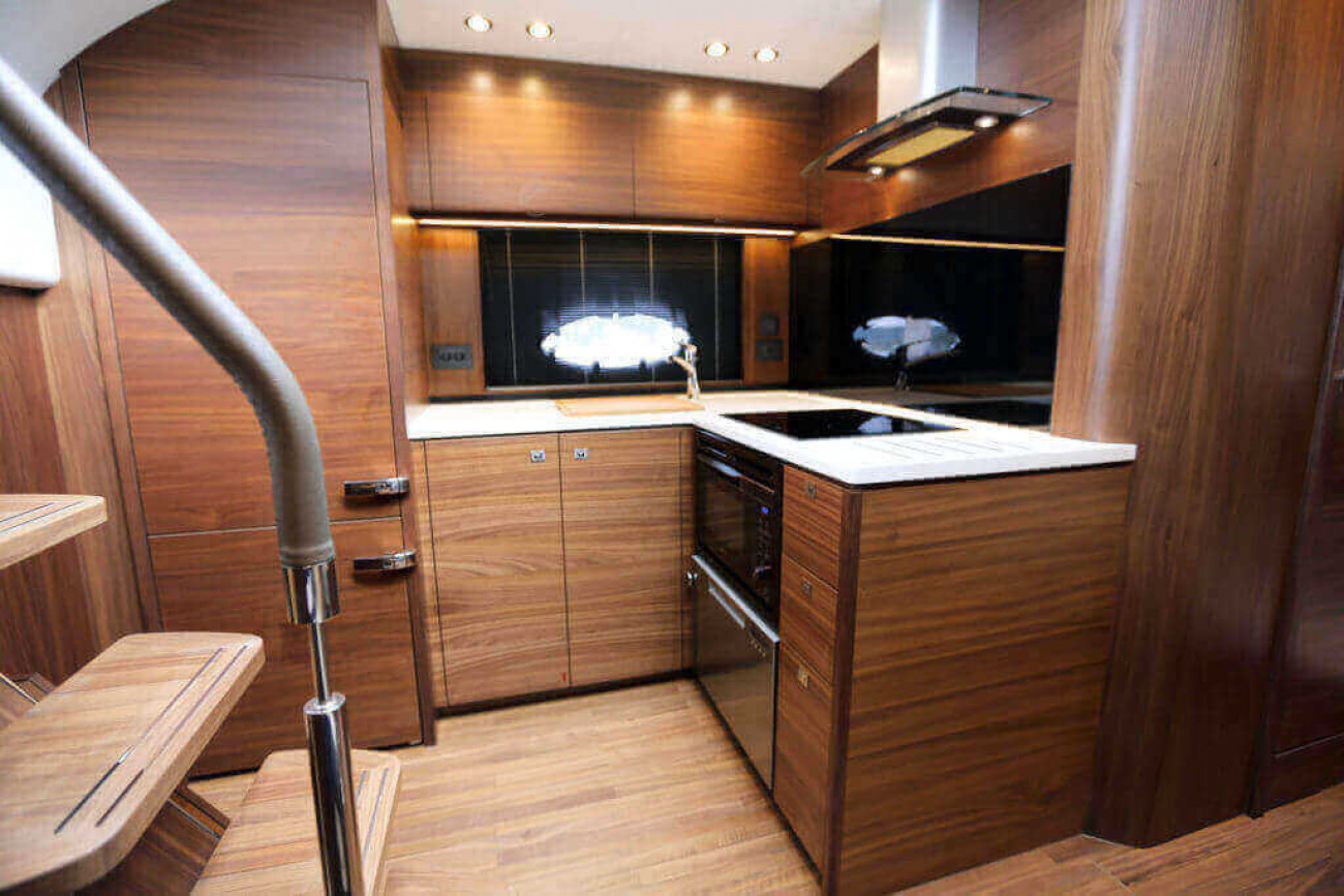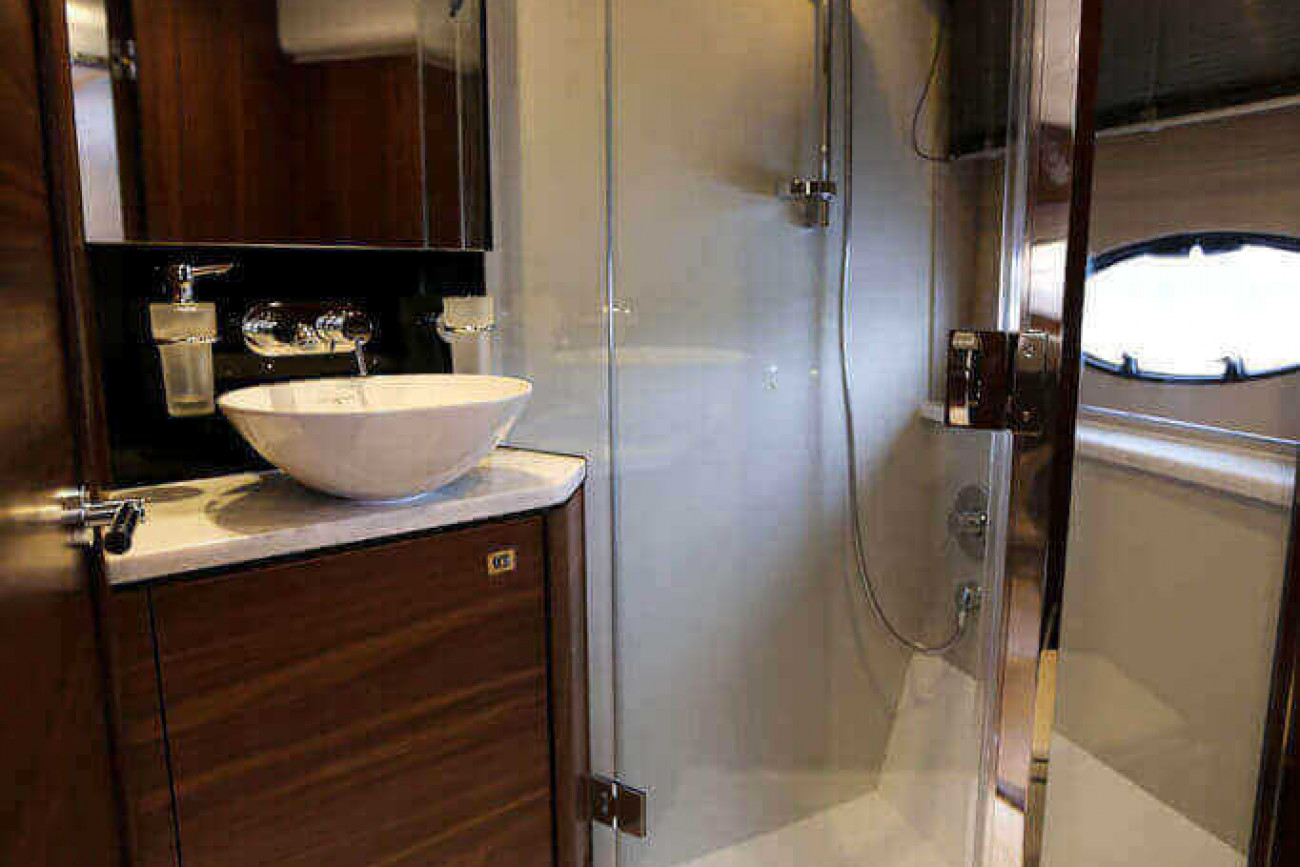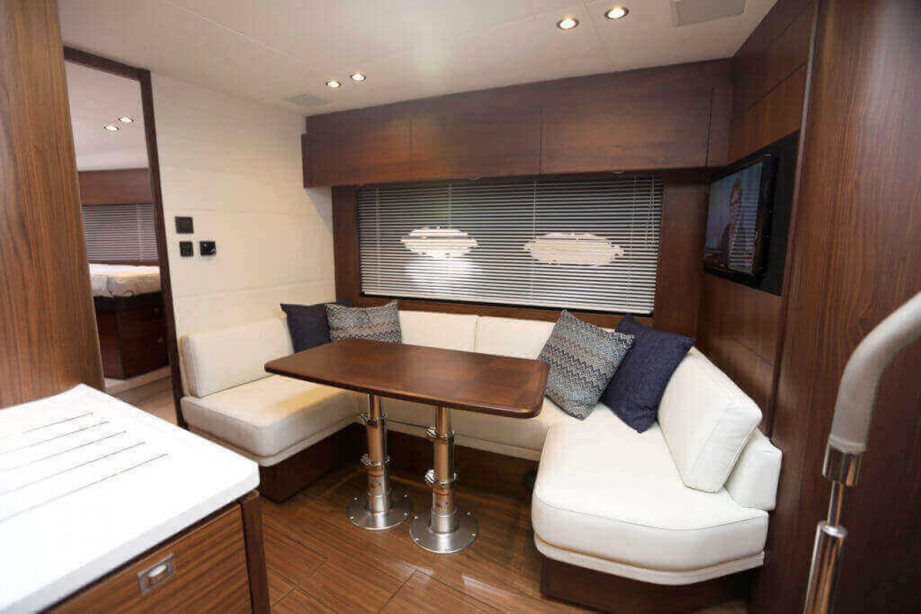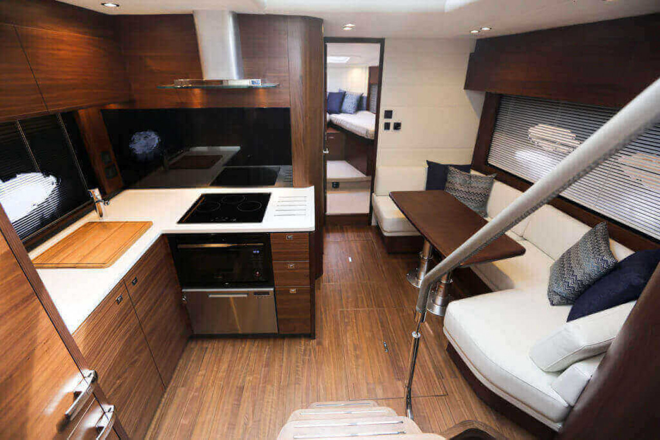 Under däck är dinetten något större än för V48:an, och kan konverteras till en tillfällig sovplats. Med en fullhöjdskyl/frys och en elektrisk mikrovågsugn plus en konventionell ugn är pentryt utrustat med det moderna kökets alla bekvämligheter. Fullbreddshytten och gästkabinen i fören, som kan utrustas med en dubbelbädd eller sinsemellan vinklade bäddar (“öppen sax”) har utsökt finish. Fullbreddsägarkabinen midskepps är fantastisk och i sig själv ett underbart utrymme att vistas i.