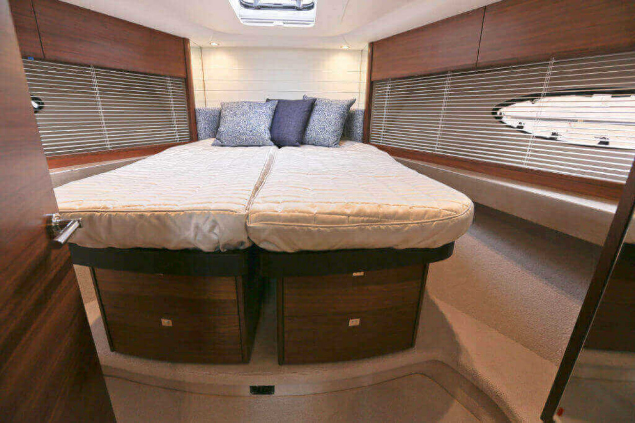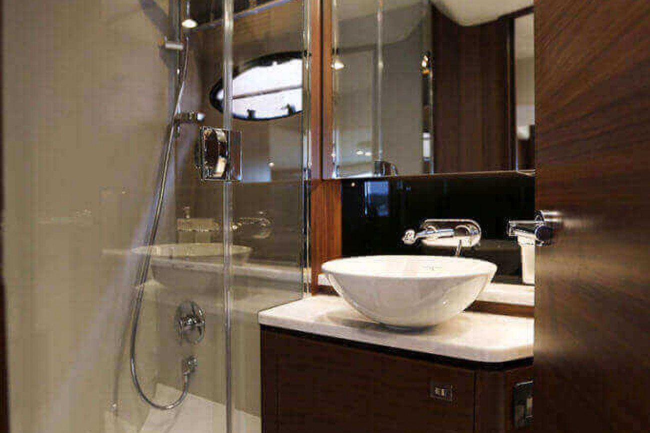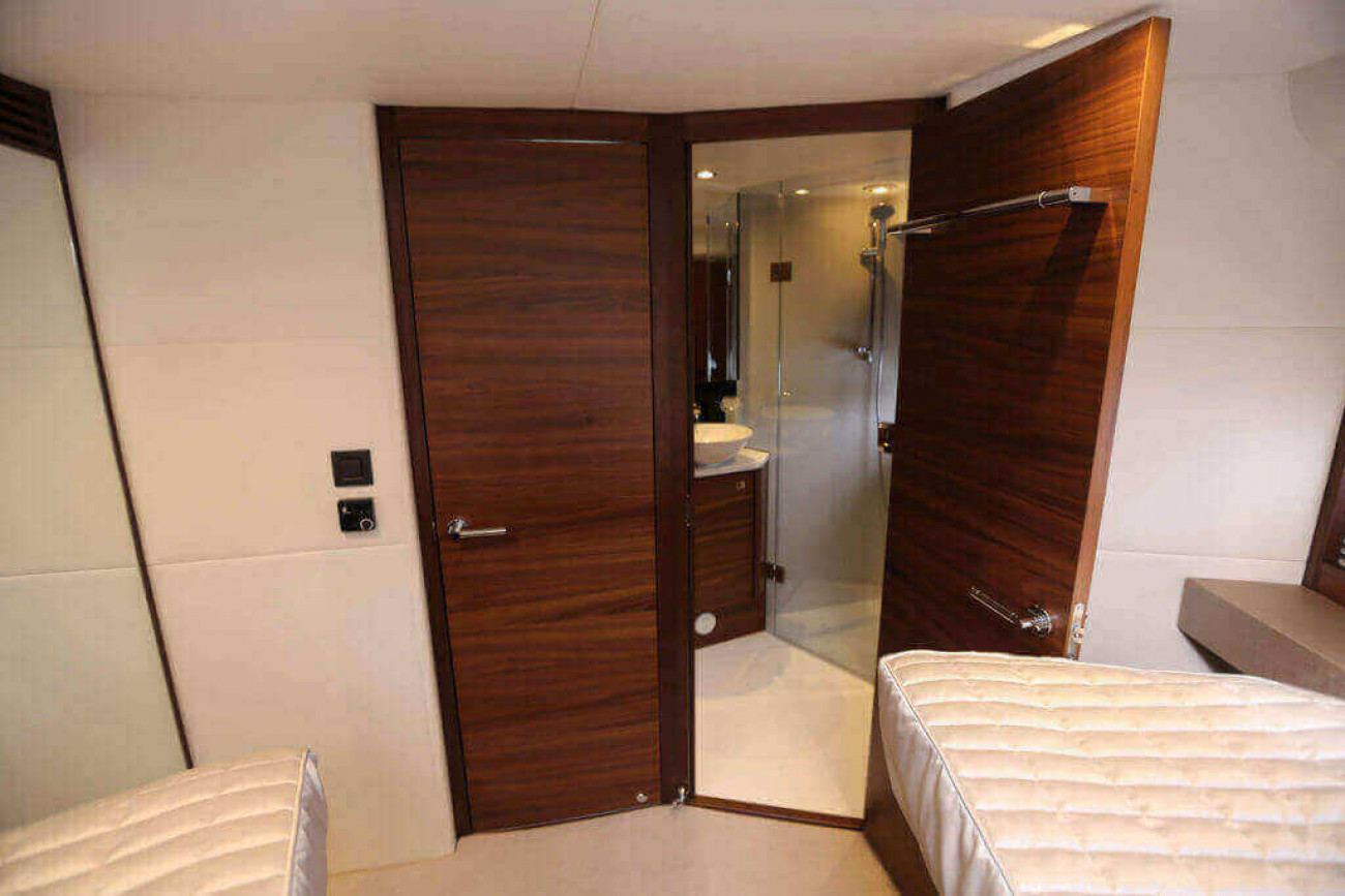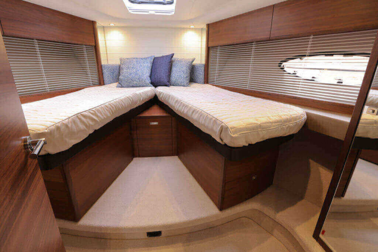 Under däck är dinetten något större än för V48:an, och kan konverteras till en tillfällig sovplats. Med en fullhöjdskyl/frys och en elektrisk mikrovågsugn plus en konventionell ugn är pentryt utrustat med det moderna kökets alla bekvämligheter. Fullbreddshytten och gästkabinen i fören, som kan utrustas med en dubbelbädd eller sinsemellan vinklade bäddar (“öppen sax”) har utsökt finish. Fullbreddsägarkabinen midskepps är fantastisk och i sig själv ett underbart utrymme att vistas i.
