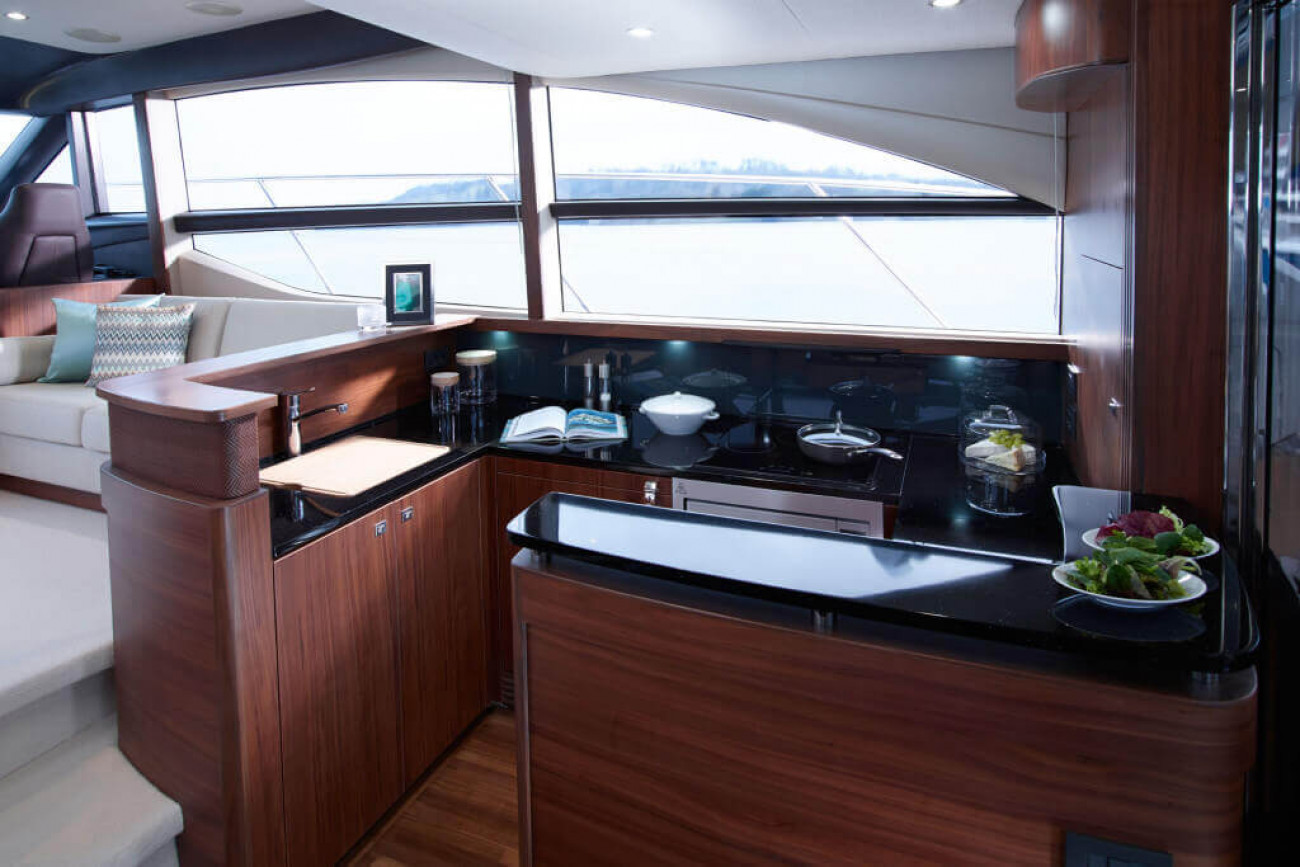 Med en volym utöver det vanliga för sin storlek, har 52:an en magnifik fullbredds ägarsvit plus två väl tilltagna extra kabiner. Det övre däcket erbjuder en ny utformning av pentryt i aktern, som passar lika bra för privata middagsbjudningar som överdådiga partyn i förarkabinen. Det vakuuminjicerade skrovet ger prestanda och bränsleeffektivitet i lika hög grad.