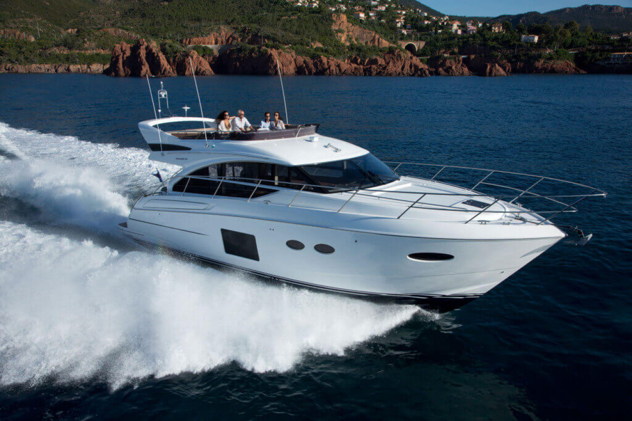 † Fart och räckvidd är uppskattade på en båt med standardutrustning och varierar beroende på skrovets renhet, akterdrevets skick, last, vatten- och lufttemperaturer, sjöförhållanden och andra faktorer. Uppskattningar ges därför i god tro men utan garanti eller några förpliktelser oss oss eller Princess Yachts International plc.