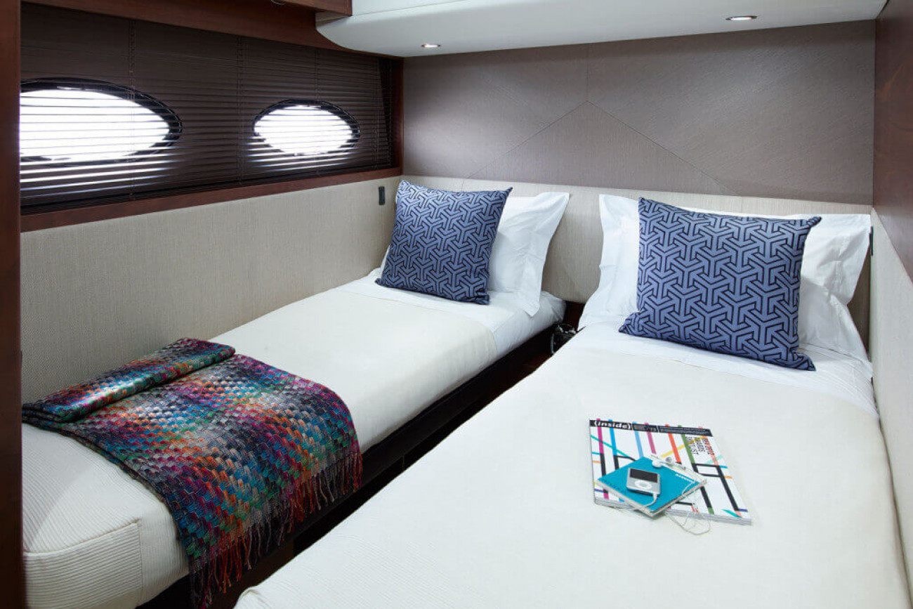 • Two full-size single beds (with optional sliding berth conversion to double)