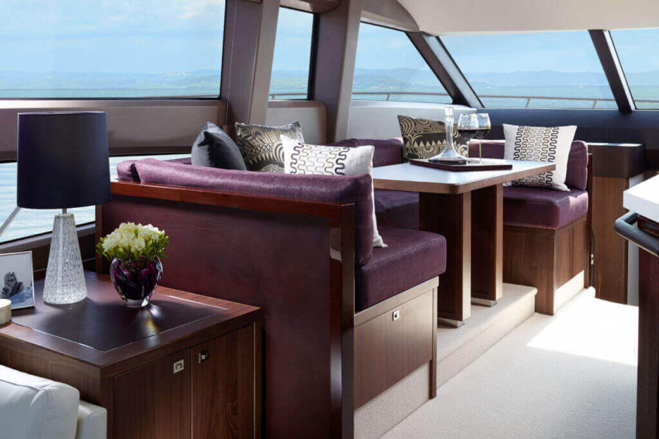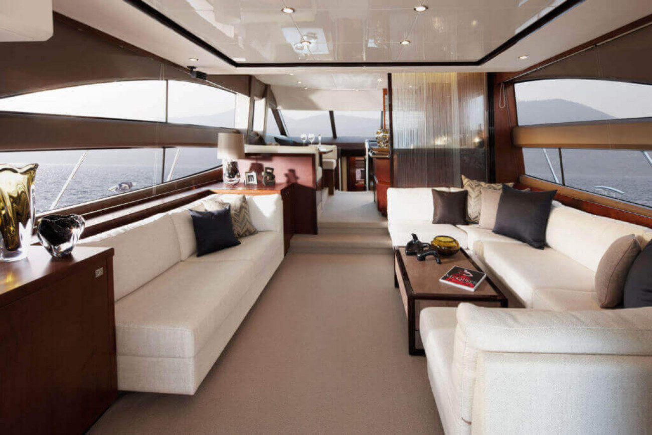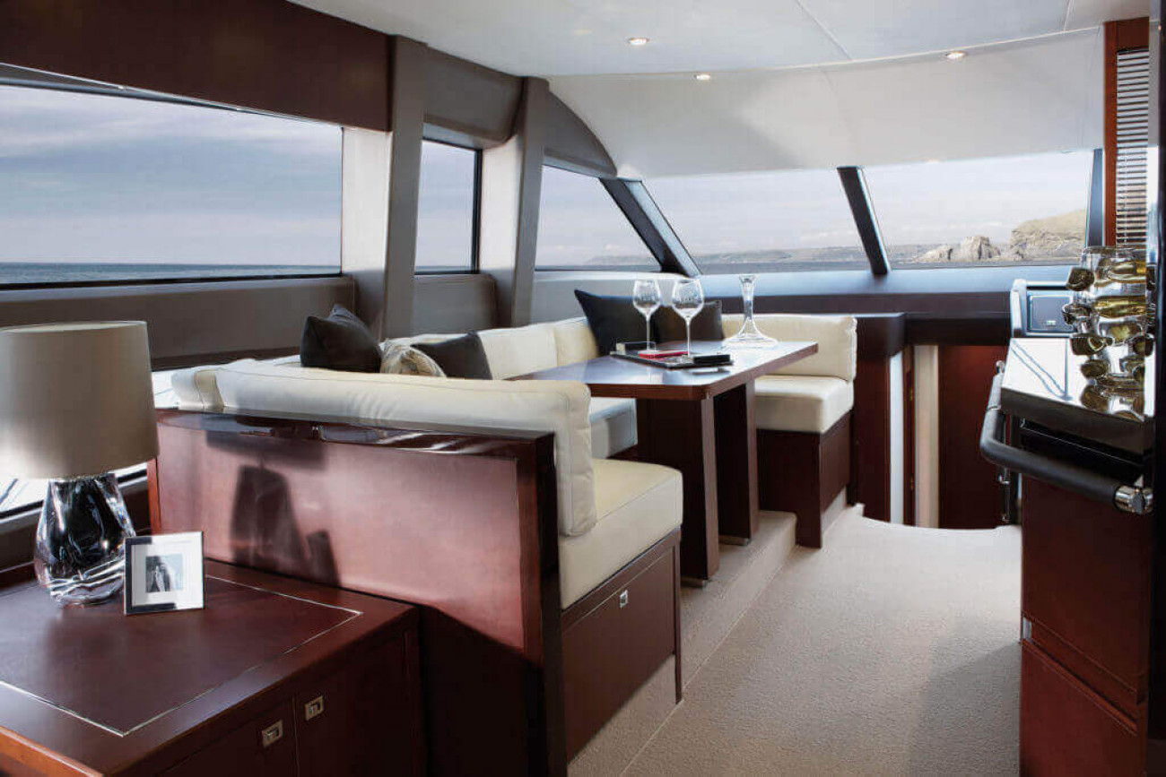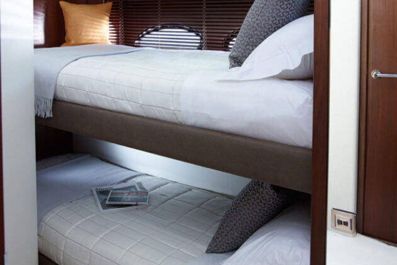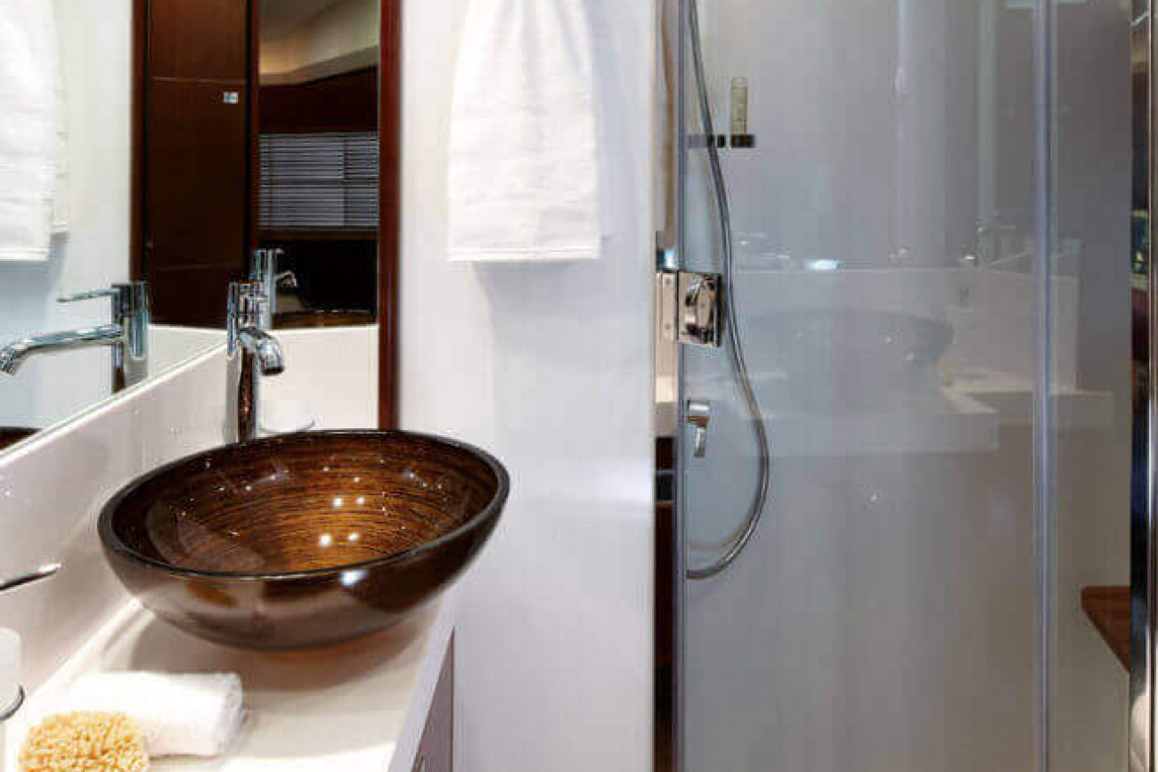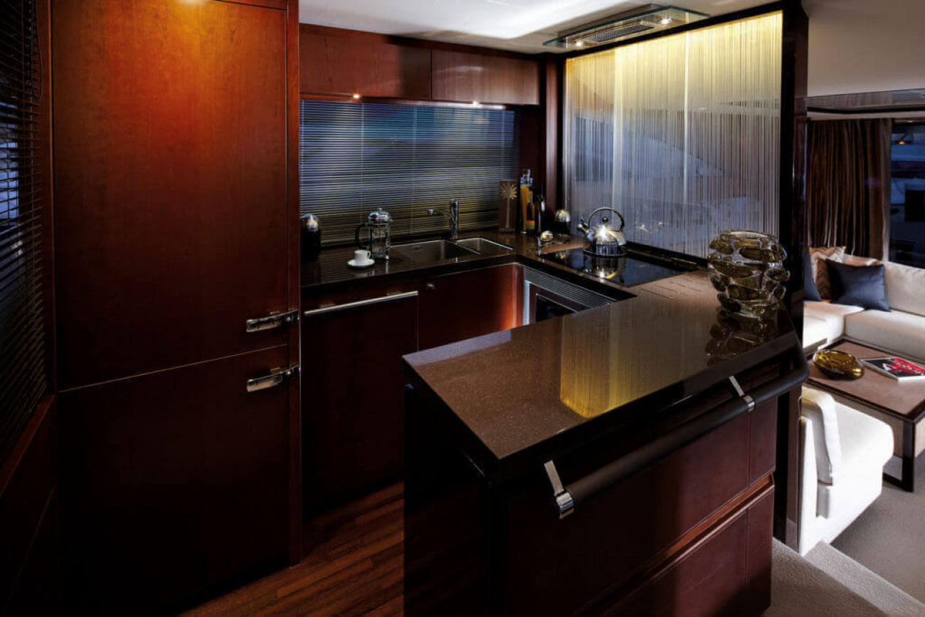 Bakom sin eleganta, sportiga profil döljer sig en oerhört rymlig 4-kabins motoryacht. Det är imponerande för en yacht av den här klassen, men kanske ännu mer så då inget tyder på att man kompromissat någonstans. En VIP-svit med badrum och ytterligare två gästkabiner ger lyxigt boende för alla dina gäster, men den magnifika fullbreddskabinen midskepps, som är upplyst av enorma skrovfönster, ger mer känslan av “’boutiquehotell” än “motoryacht”!