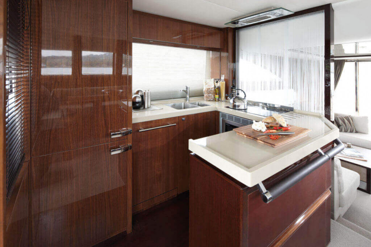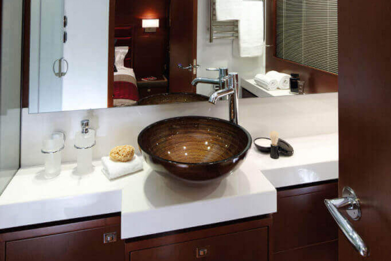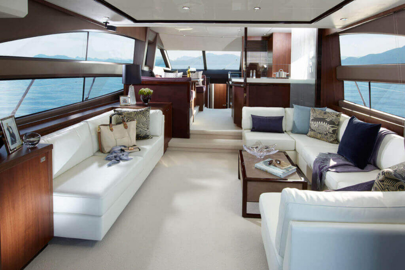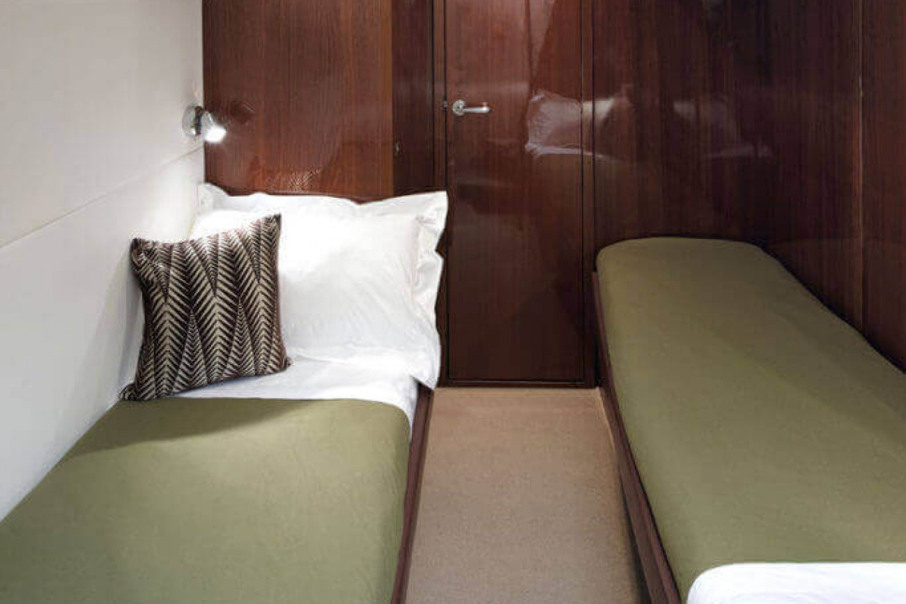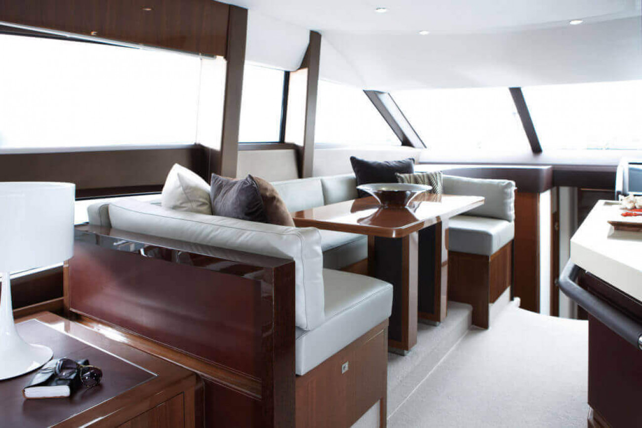 Bakom sin eleganta, sportiga profil döljer sig en oerhört rymlig 4-kabins motoryacht. Det är imponerande för en yacht av den här klassen, men kanske ännu mer så då inget tyder på att man kompromissat någonstans. En VIP-svit med badrum och ytterligare två gästkabiner ger lyxigt boende för alla dina gäster, men den magnifika fullbreddskabinen midskepps, som är upplyst av enorma skrovfönster, ger mer känslan av “’boutiquehotell” än “motoryacht”!