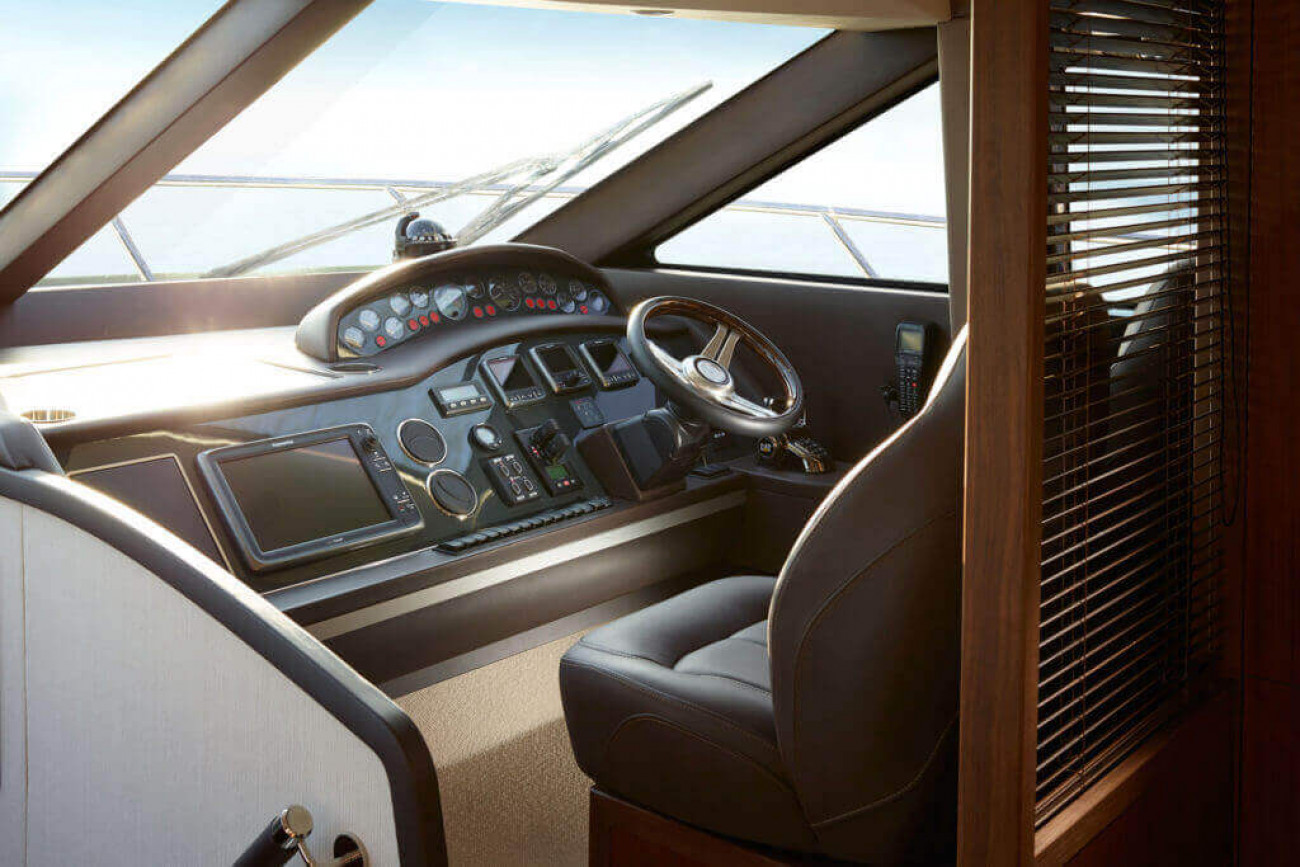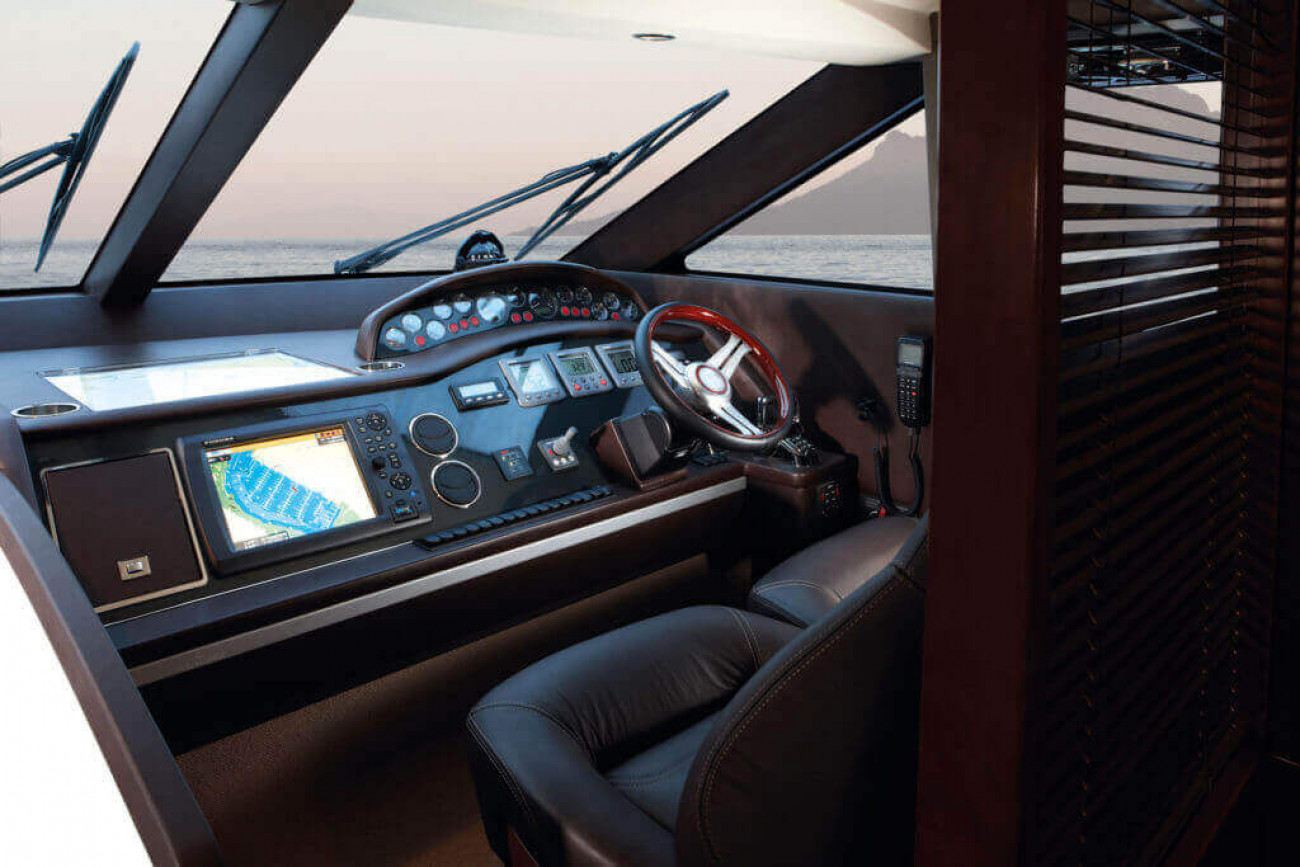 Men den här båten har både substans och stil. Prestandan är lika imponerande, med en toppfart på över 30 knop. Med fingerlätt servostyrning och kraftfulla båg- och akterpropellrar har styrmannen full kontroll. Riktningsändringar utförs snabbt och naturligt, vilket gör Princess 64 till en verklig fröjd för styrmannen, speciellt vid en marschfart kring 25 knop.