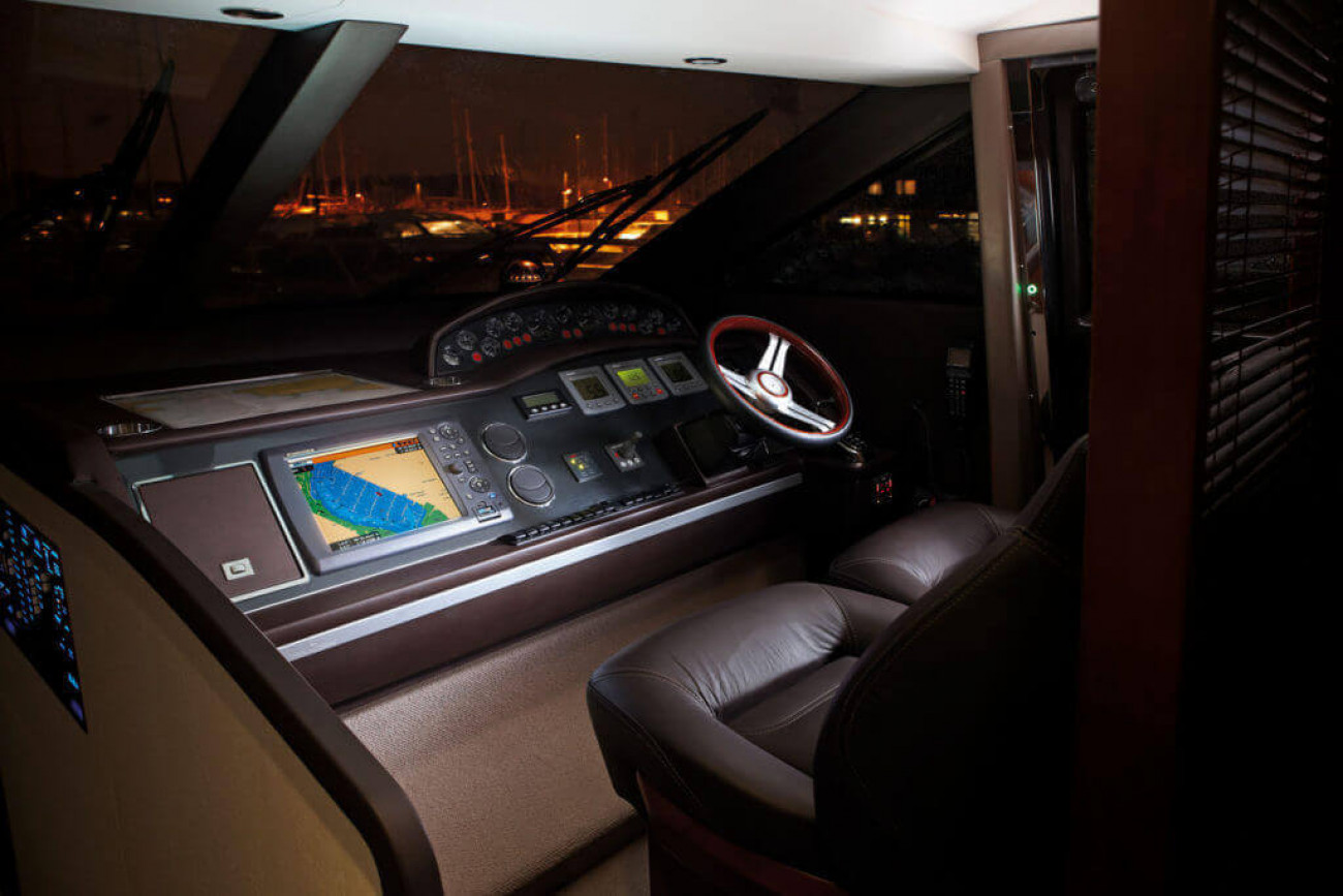 • Navigation system including colour radar, GPS and chartplotter, VHF/RT, speed and distance log, echo sounder with alarm, autopilot and high speed magnetic compass