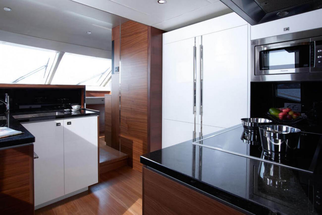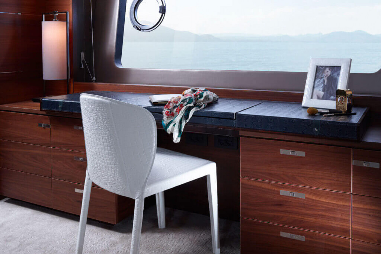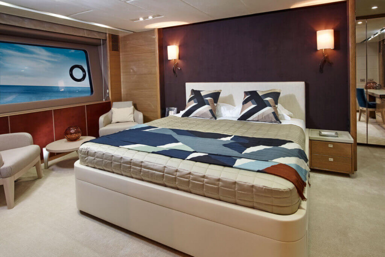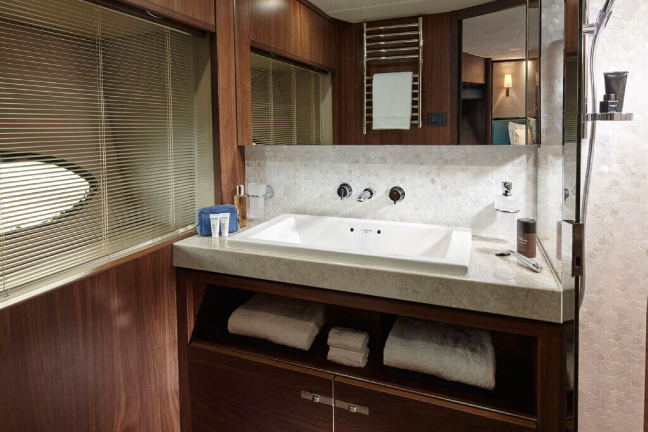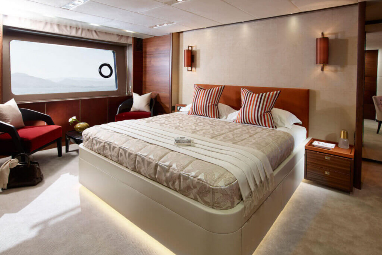 Bostadsutrymmena består av fyra kabiner med en VIP-svit i båtens bog, en dubbelkabin och en tvillingkabin samt en överdådig kaptenshytt midskepps. De nya ramlösa skrovfönstren samt hans-och-hennes handfat i badrummet gör detta till en verkligt speciell kabin. Det är också möjligt att få en utformning med fem kabiner, och med kaptenshytten delad i två mindre kabiner. Det är generöst med utrymme för besättningen akter om maskineriet (tre motoralternativ).