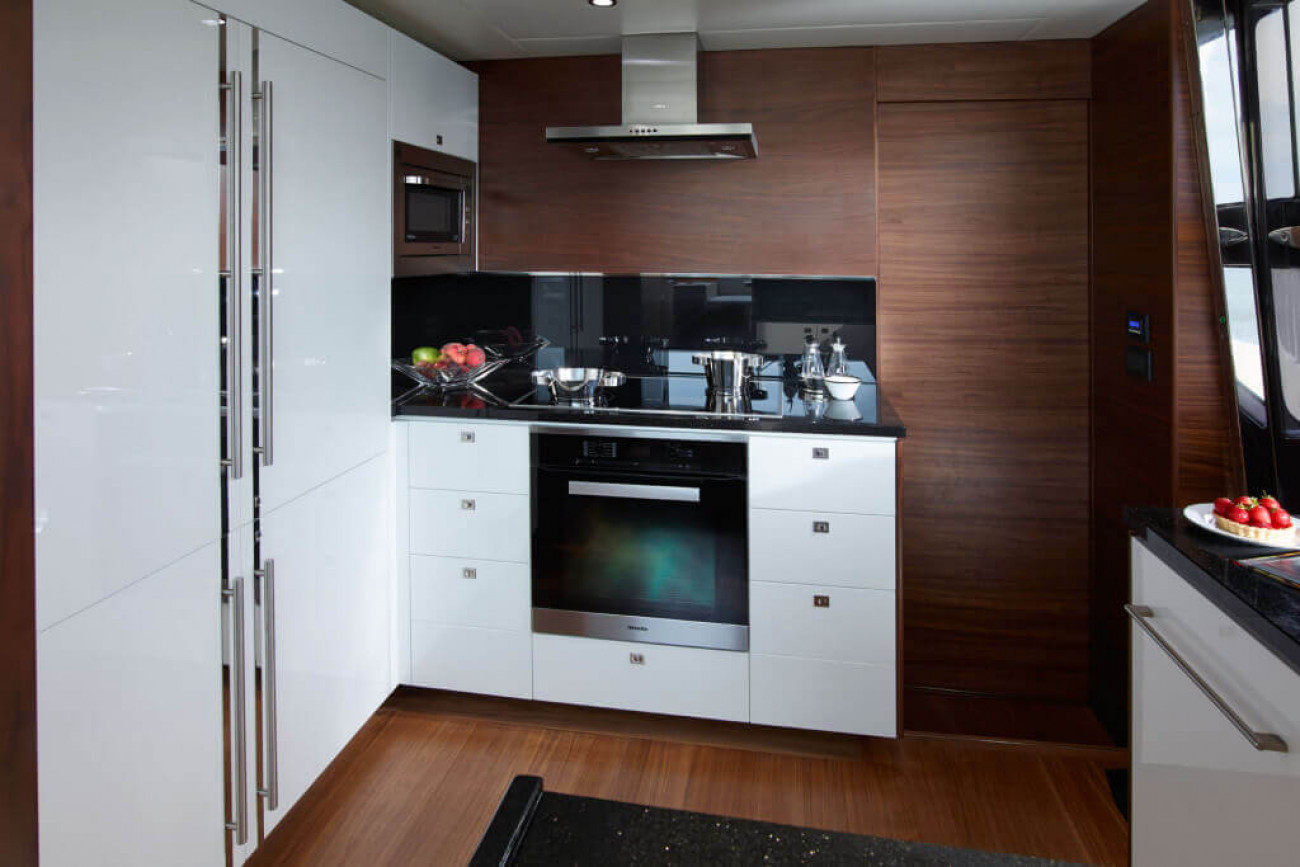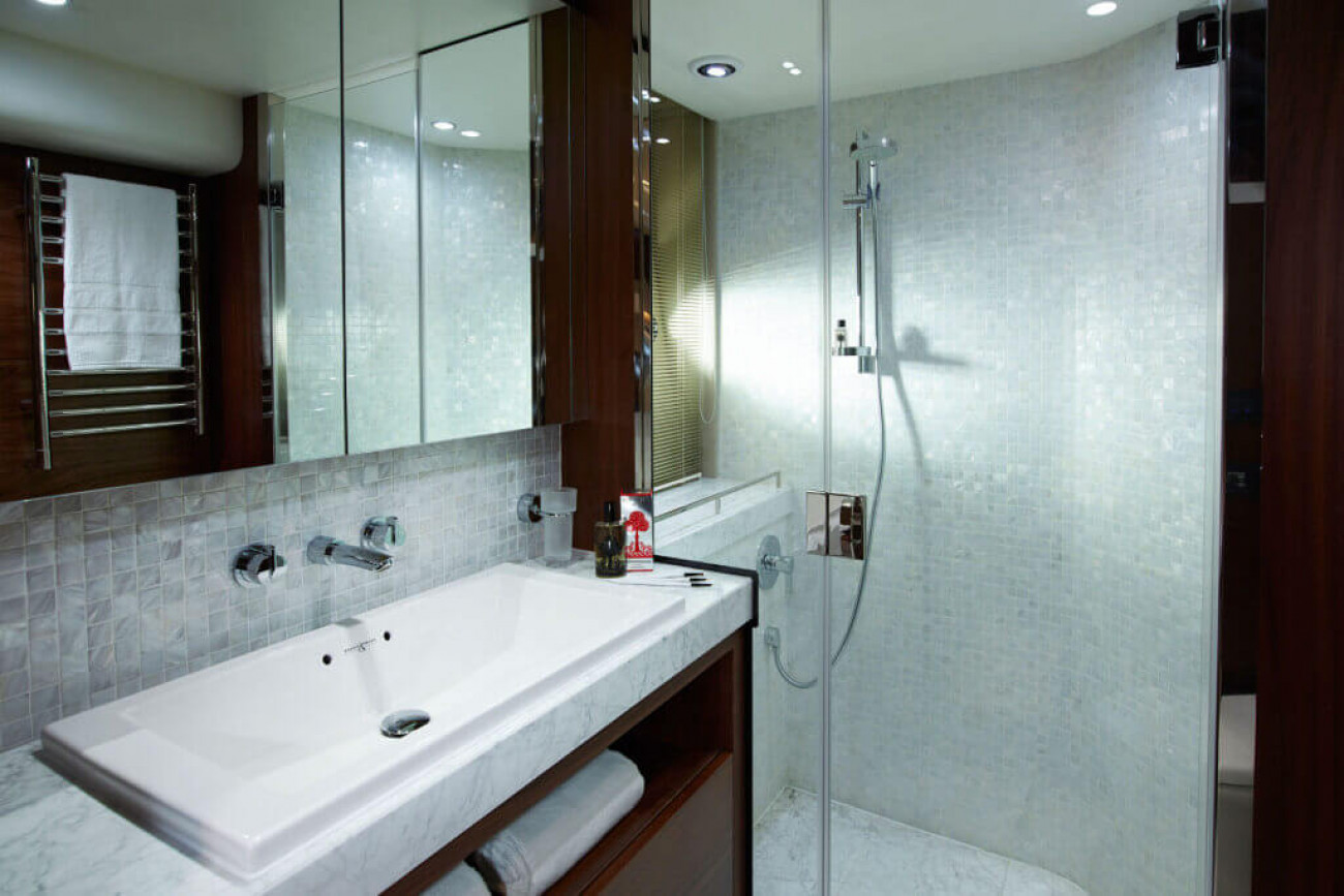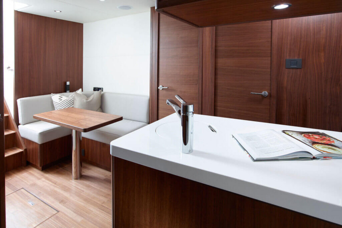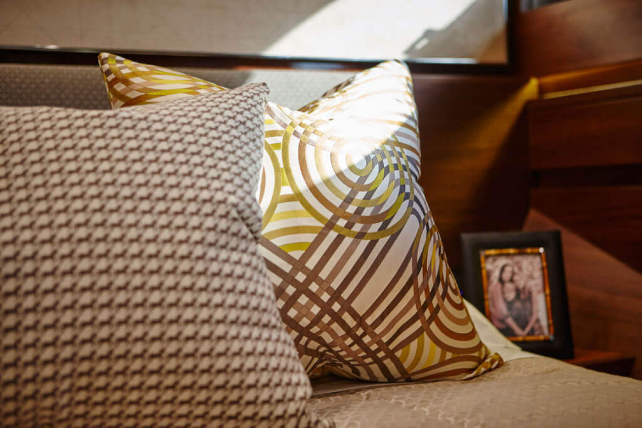 Bostadsutrymmena består av fyra kabiner med en VIP-svit i båtens bog, en dubbelkabin och en tvillingkabin samt en överdådig kaptenshytt midskepps. De nya ramlösa skrovfönstren samt hans-och-hennes handfat i badrummet gör detta till en verkligt speciell kabin. Det är också möjligt att få en utformning med fem kabiner, och med kaptenshytten delad i två mindre kabiner. Det är generöst med utrymme för besättningen akter om maskineriet (tre motoralternativ).