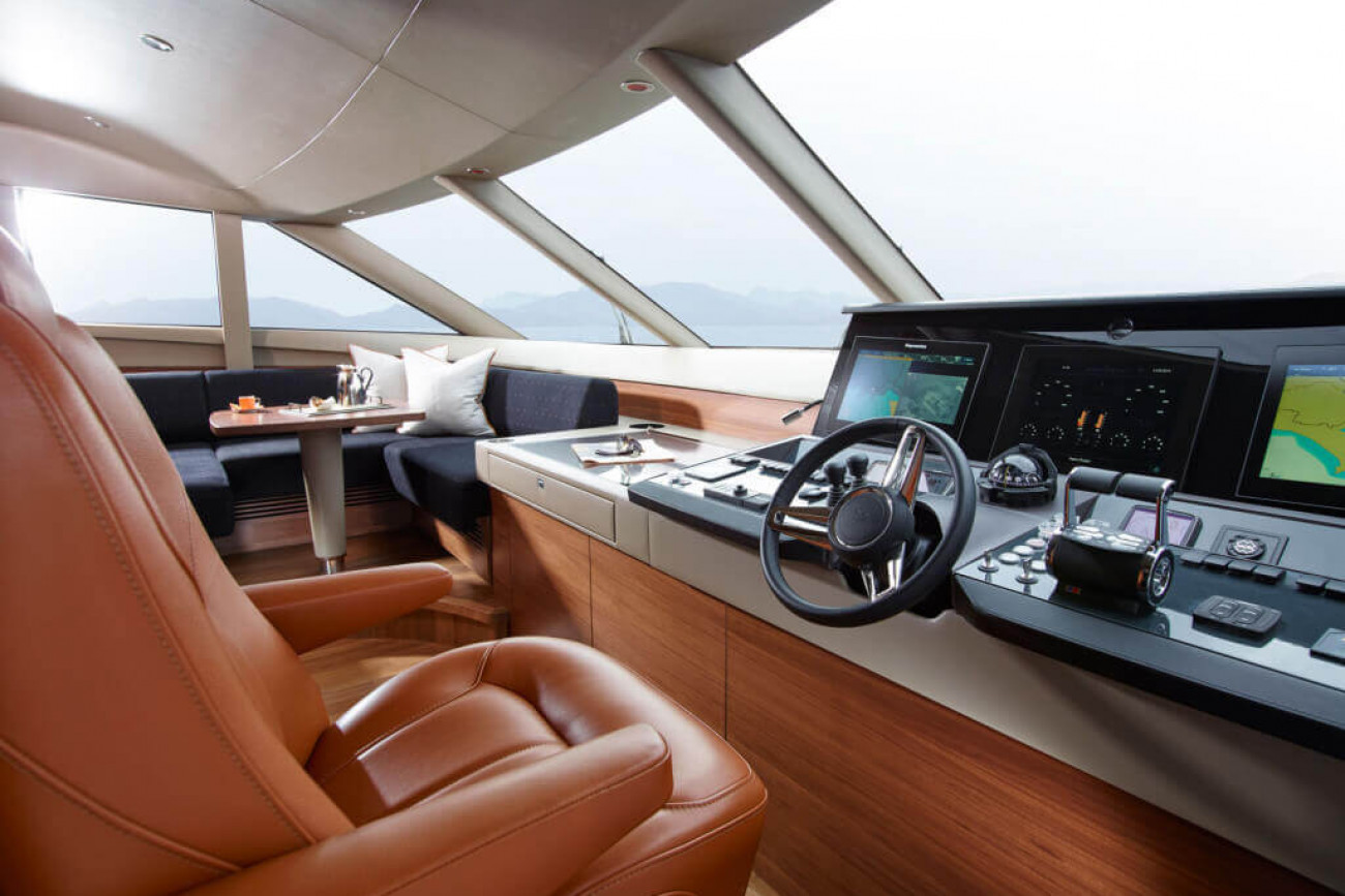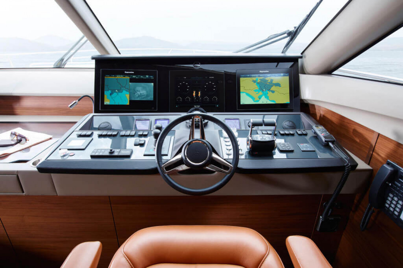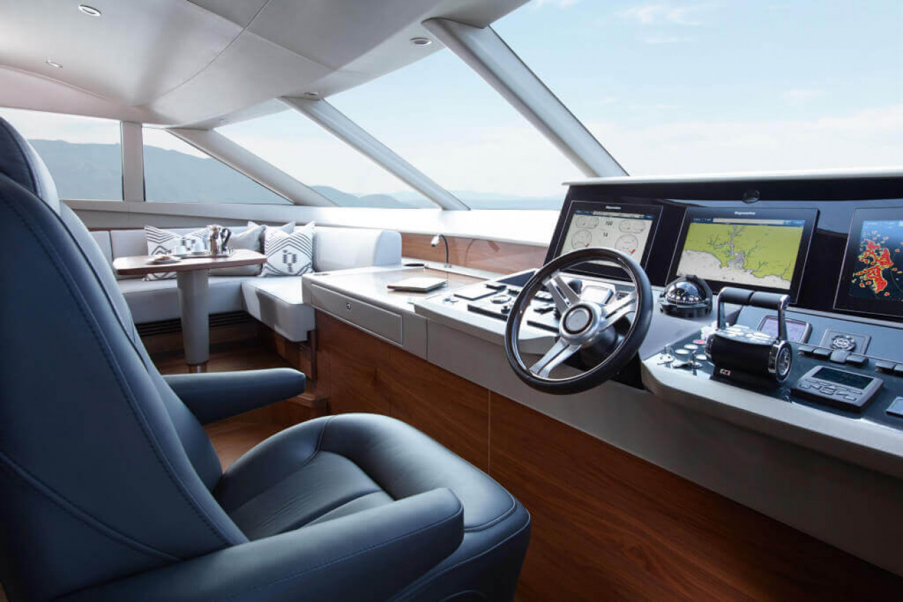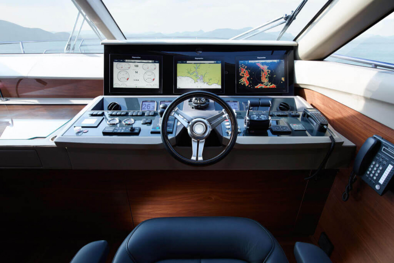 • Helm position with powered raise/lower console, repeat navigation equipment including radar/chartplotter and engine instrumentation