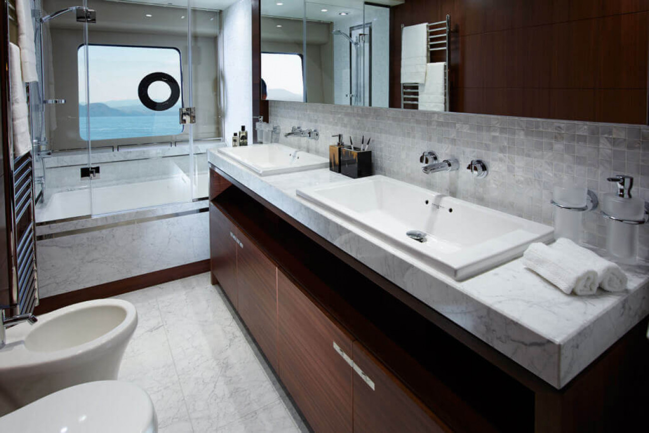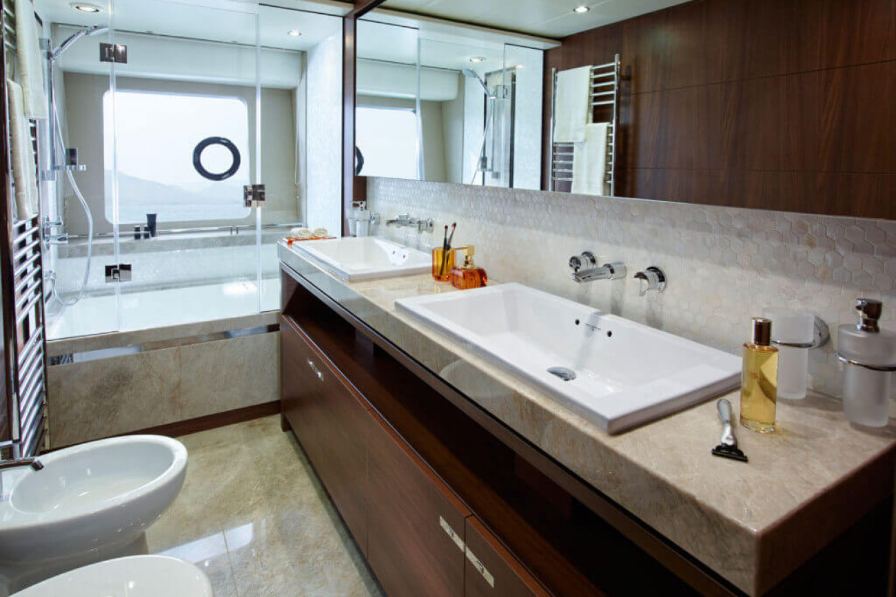 Något annat som imponerar med den här motoryachten är dess maxfart på 30 knop – mycket imponerande för en båt som förflyttar 70 ton!