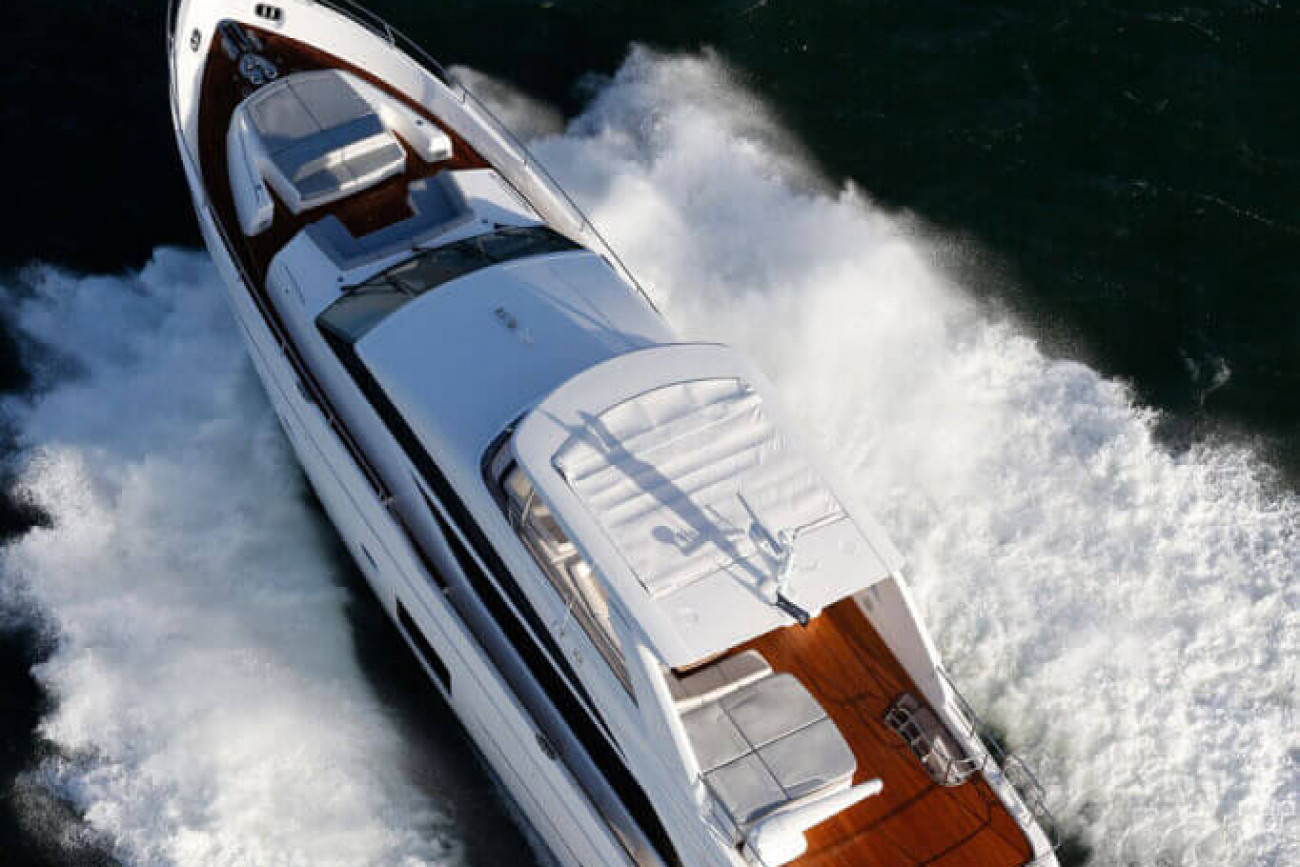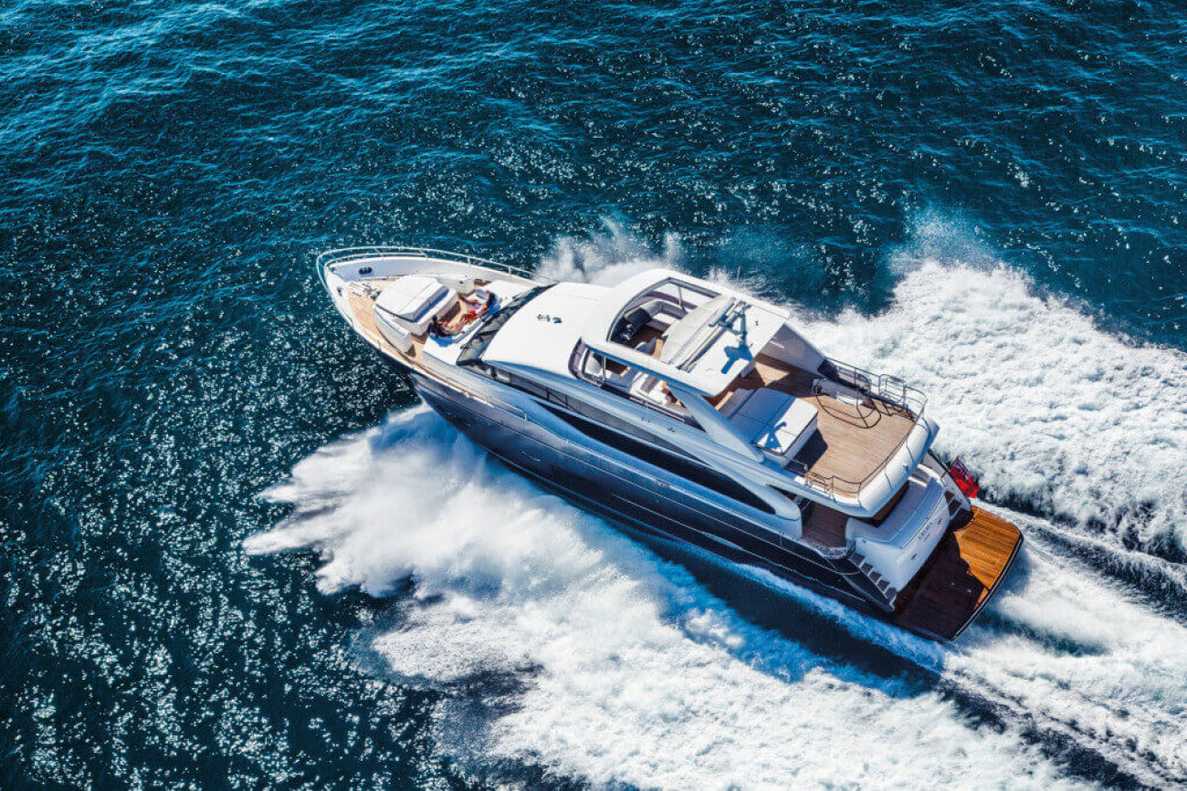 † Fart och räckvidd är uppskattade på en båt med standardutrustning och varierar beroende på skrovets renhet, akterdrevets skick, last, vatten- och lufttemperaturer, sjöförhållanden och andra faktorer. Uppskattningar ges därför i god tro men utan garanti eller några förpliktelser oss oss eller Princess Yachts International plc.