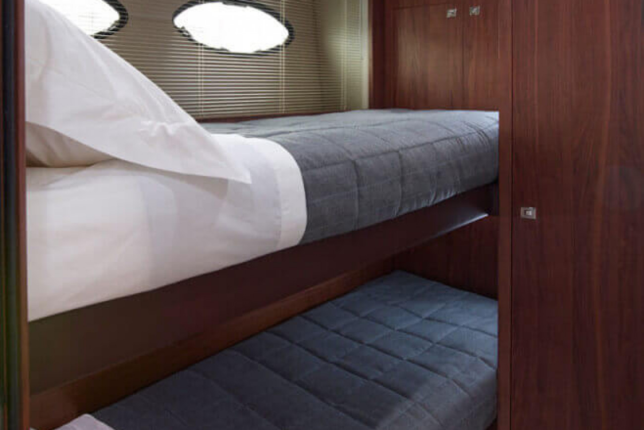 • Crew cabin with two single berths, wardrobe and storage lockers