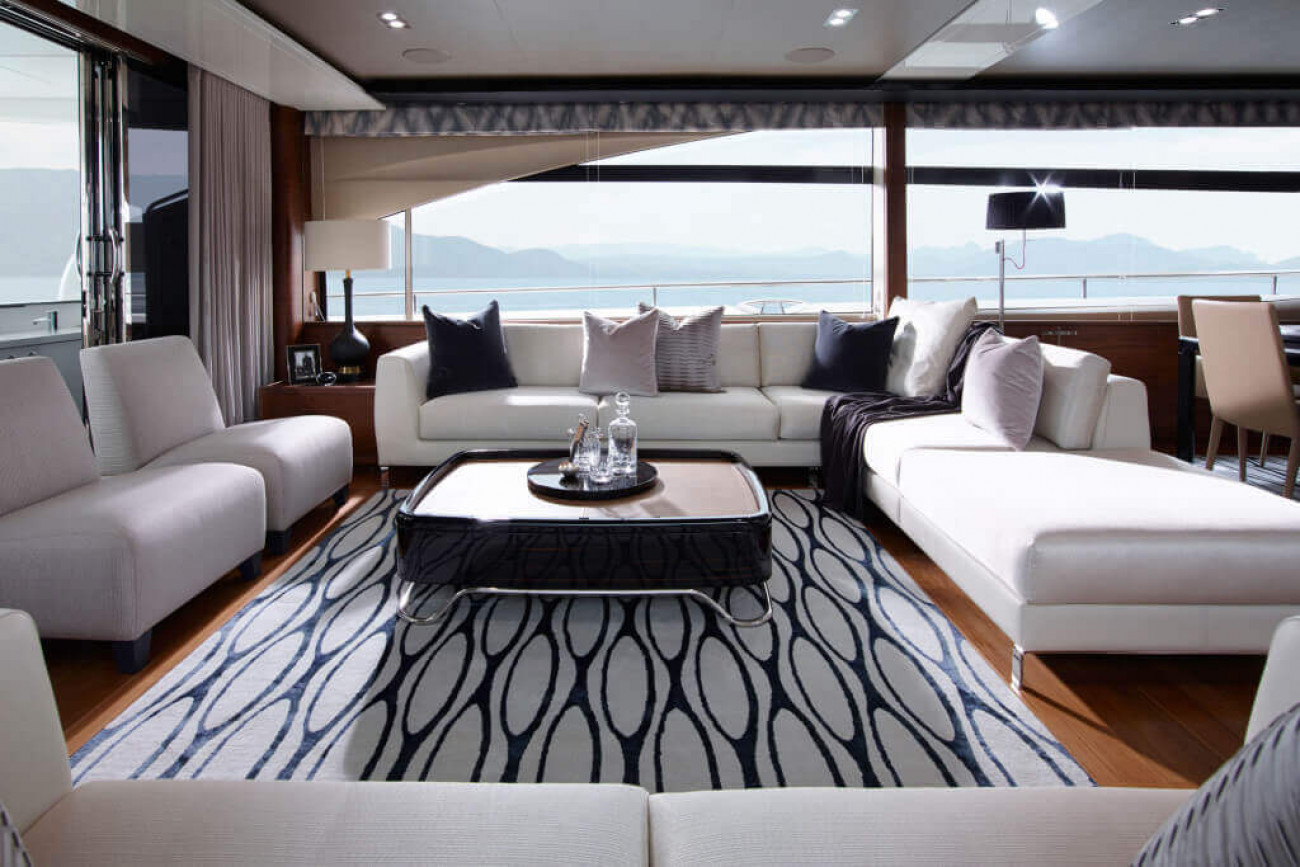 Ett trevligt nytt tillägg i designen på denna lyxiga motoryacht är den valfria utfällbara balkongen på salongens styrbordssida. Dubbla skjutdörrar förbinder balkongen med salongen, så en bättre plats att titta på solnedgången innan maten serveras finns knappast!
