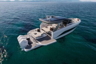 Det öppna huvuddäcket hyllar livet till havs och bjuder på en rymlig cockpit med solbädd, sittplatser, matplats och dubbla wetbars, medan tre förarstolar ger en tydligt sportig karaktär. Under däck finns en flexibel planlösning med salong och akterkabin som standard, samt möjlighet att välja en framkabin eller ett nedre däckskök för att passa olika livsstilar.
