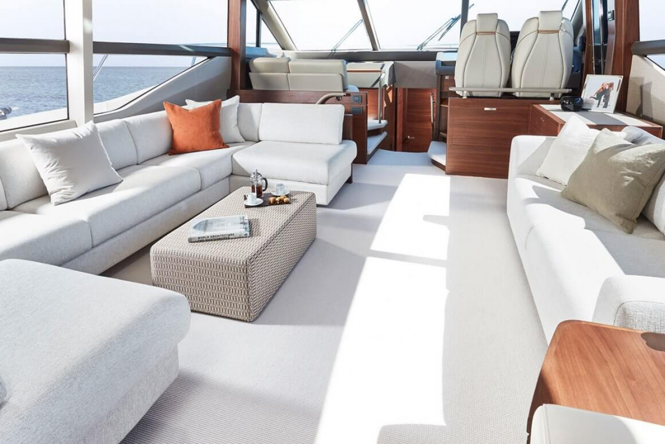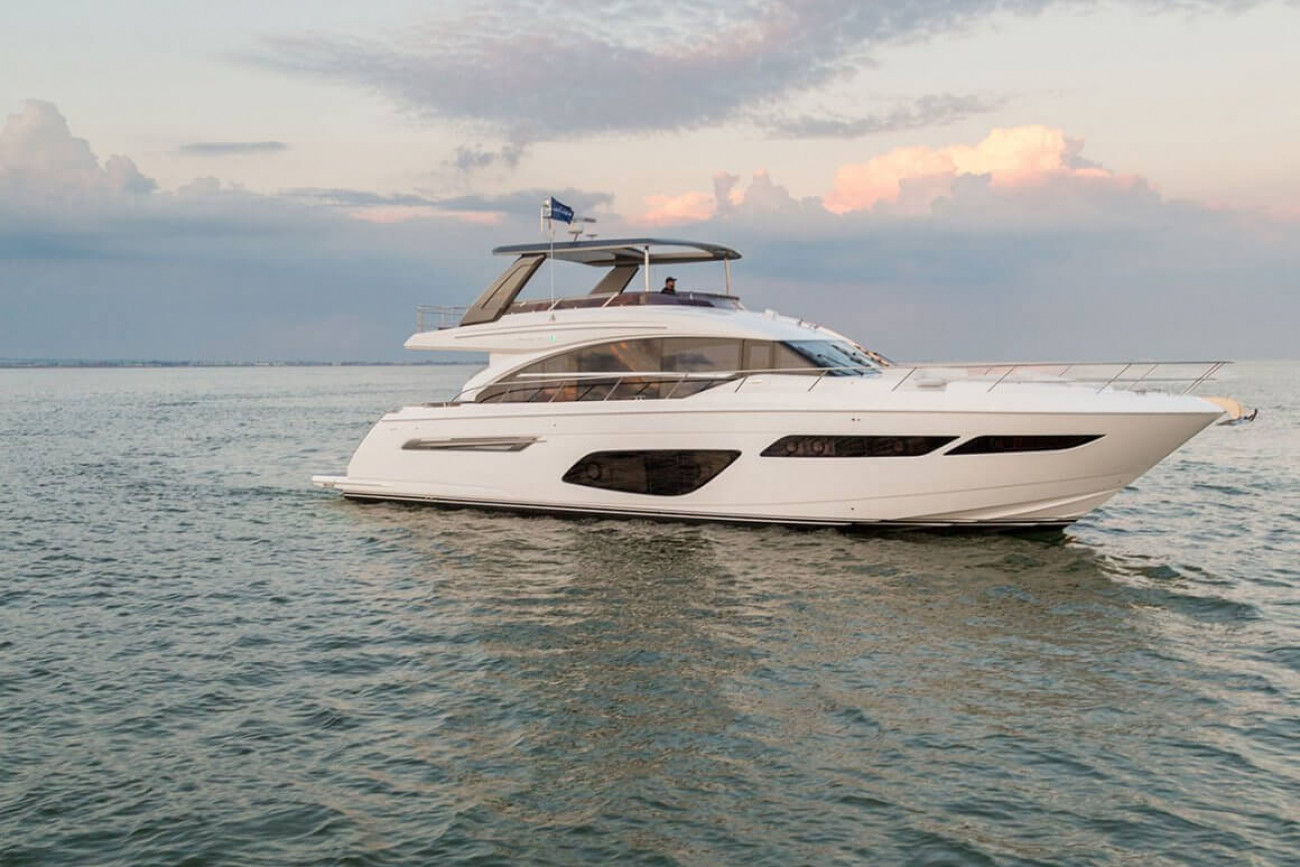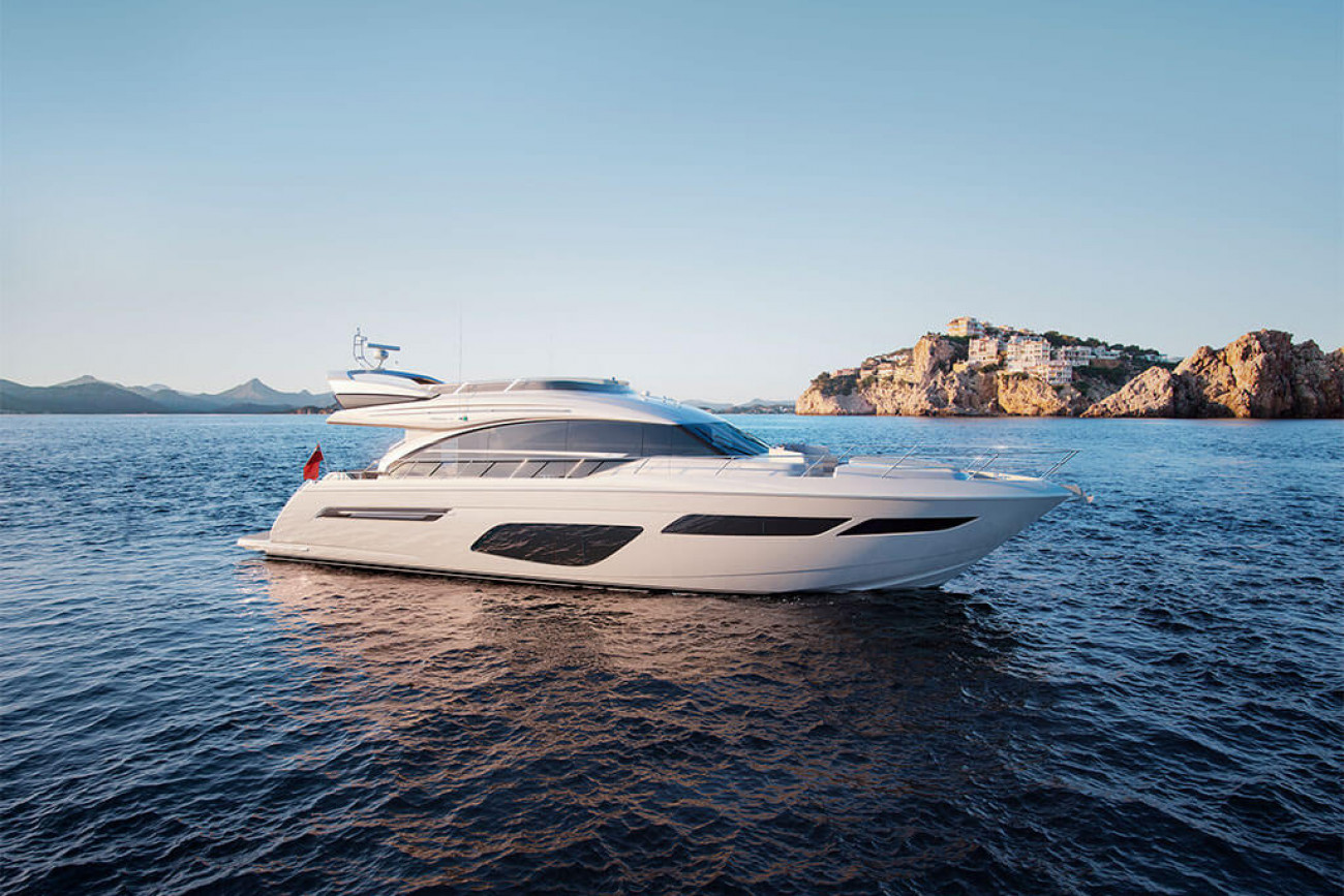 Helt nya Princess F70 är flaggskeppet i F Class och har det senaste i Princess Flybridge-design och nya Allure kollektionen – ett valfritt stylingpaket med en rad passande tillbehör och ytbehandlingar. Hennes generösa, 26,58 m2 flybridge rymmer en stor U-formad matplats som servas från en fullt utrustad wetbar, solsäng akterut och en främre sittplats i anslutning till förarplatsen. Den sällskapliga layouten på huvuddäck har ett pentry akterut, helt öppningsbart mot cockpit och genomgång till fördäcksområdet med ytterligare sol- och sittplatser. Till sjöss känns hennes prestanda lätt och lyhörd hela vägen upp till 36 knop. Sammantaget en distinkt Princess upplevelse.