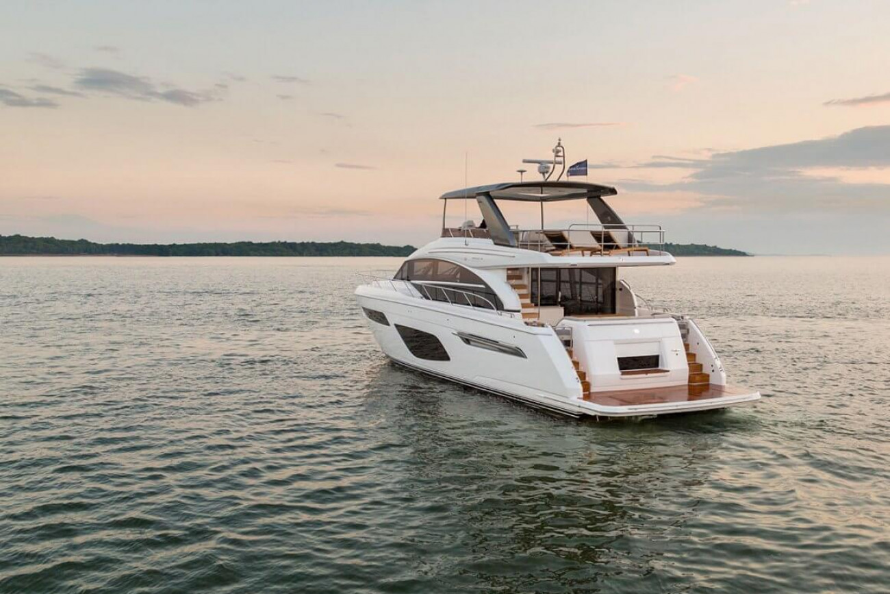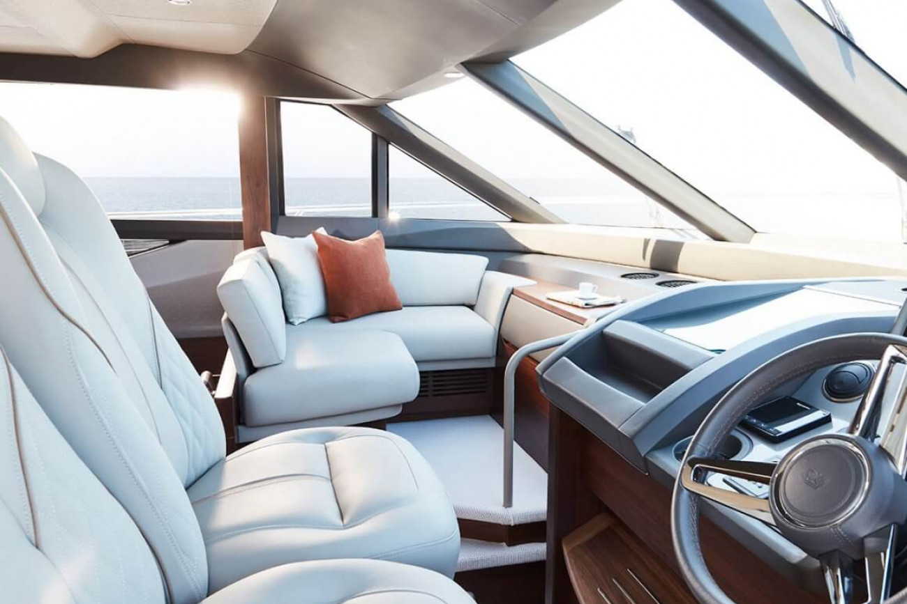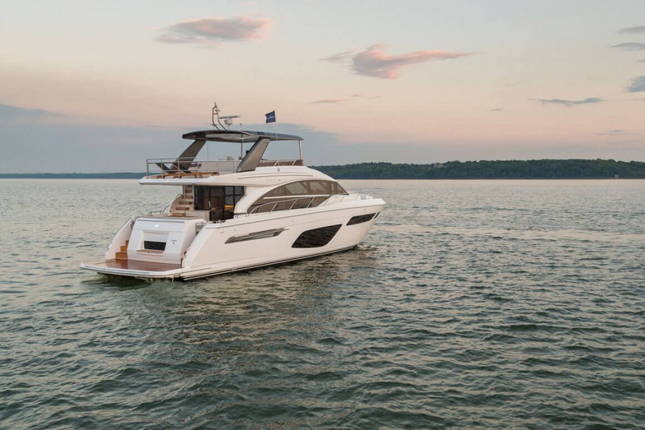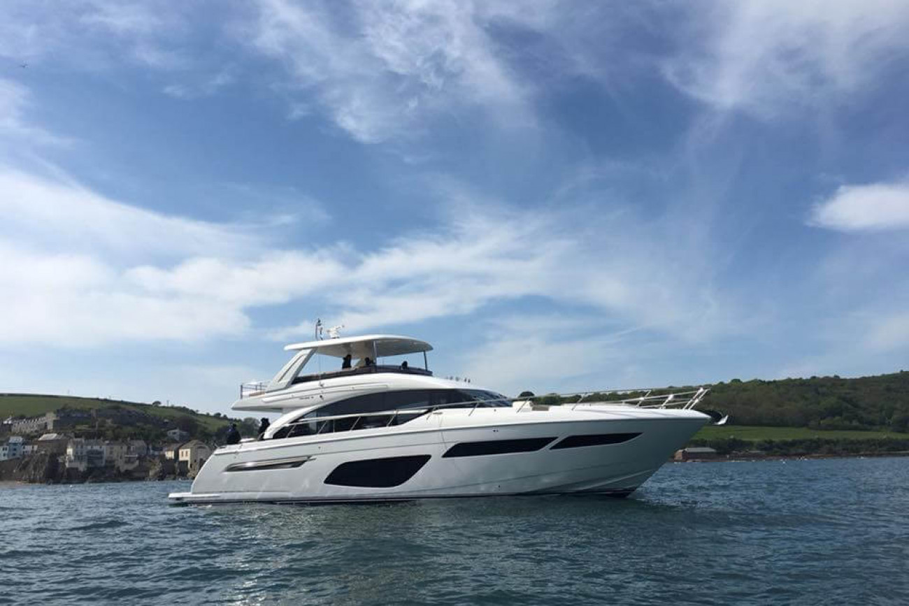 Helt nya Princess F70 är flaggskeppet i F Class och har det senaste i Princess Flybridge-design och nya Allure kollektionen – ett valfritt stylingpaket med en rad passande tillbehör och ytbehandlingar. Hennes generösa, 26,58 m2 flybridge rymmer en stor U-formad matplats som servas från en fullt utrustad wetbar, solsäng akterut och en främre sittplats i anslutning till förarplatsen. Den sällskapliga layouten på huvuddäck har ett pentry akterut, helt öppningsbart mot cockpit och genomgång till fördäcksområdet med ytterligare sol- och sittplatser. Till sjöss känns hennes prestanda lätt och lyhörd hela vägen upp till 36 knop. Sammantaget en distinkt Princess upplevelse.