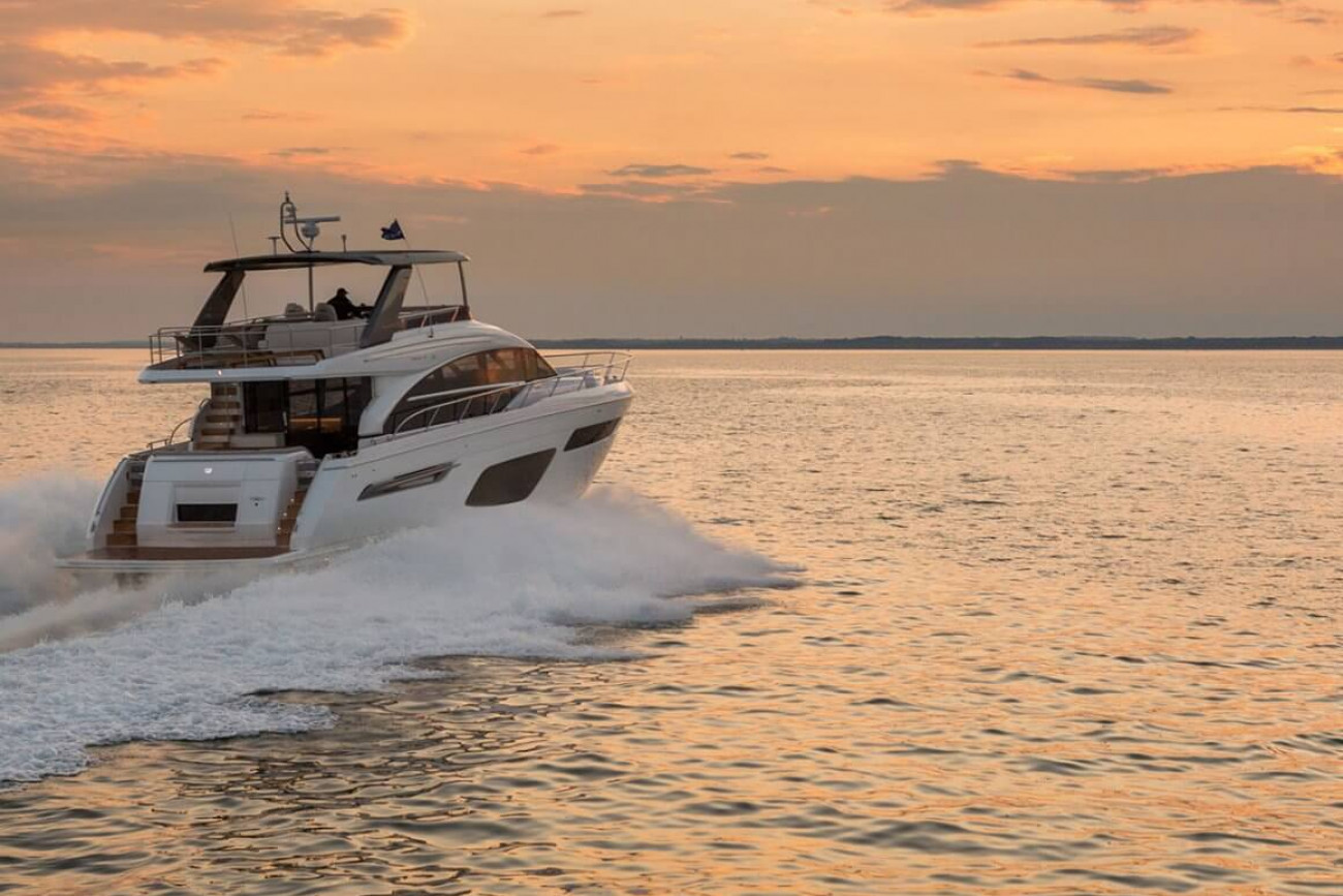 † Fart och räckvidd är uppskattade på en båt med standardutrustning och varierar beroende på skrovets renhet, akterdrevets skick, last, vatten- och lufttemperaturer, sjöförhållanden och andra faktorer. Uppskattningar ges därför i god tro men utan garanti eller några förpliktelser oss oss eller Princess Yachts International plc.
