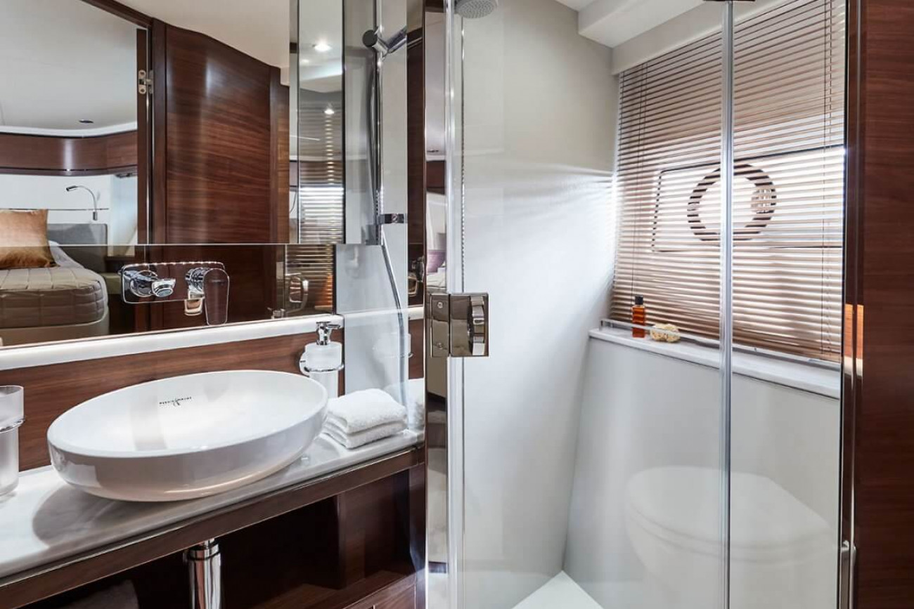 • Electric quietflush WC system with 60 gallons/72 US gallons/272 litres holding tank, content gauge and low noise electric overboard discharge, with macerator backup system as well as dockside discharge system