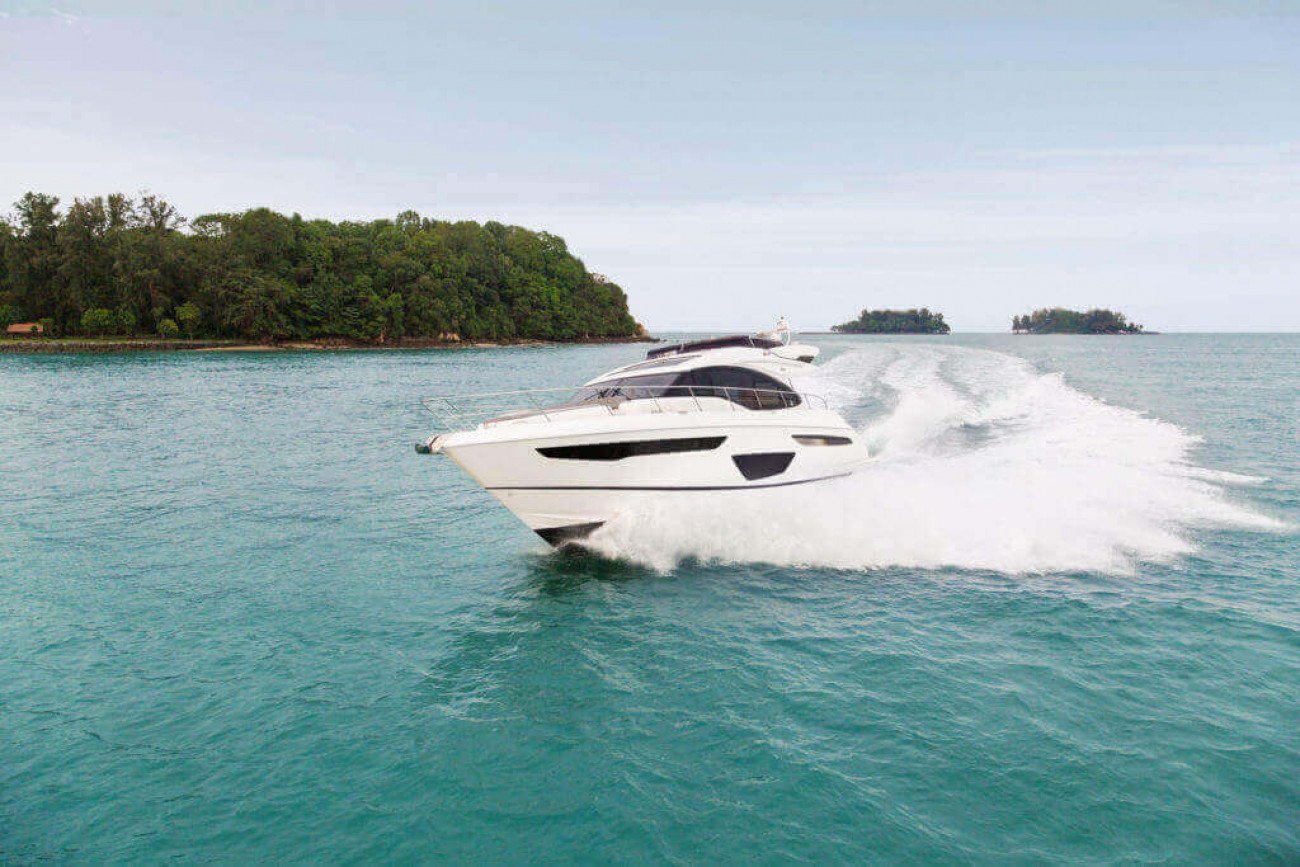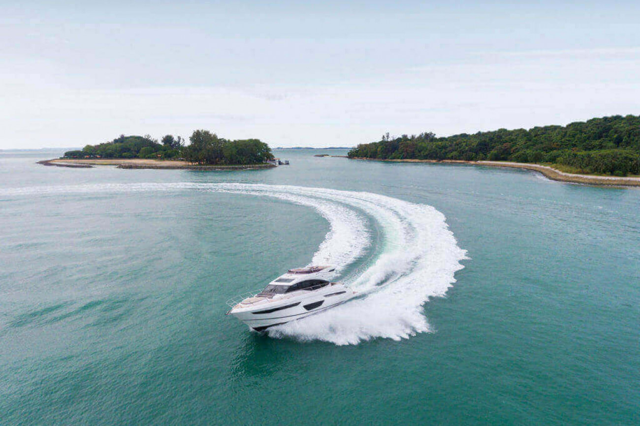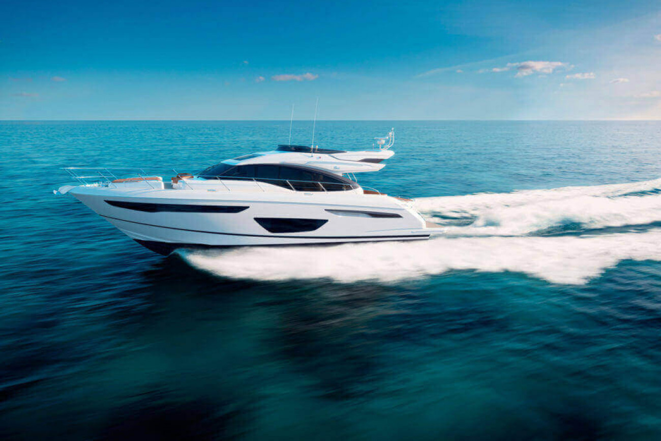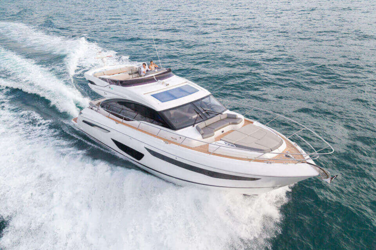 † Fart och räckvidd är uppskattade på en båt med standardutrustning och varierar beroende på skrovets renhet, akterdrevets skick, last, vatten- och lufttemperaturer, sjöförhållanden och andra faktorer. Uppskattningar ges därför i god tro men utan garanti eller några förpliktelser oss oss eller Princess Yachts International plc.