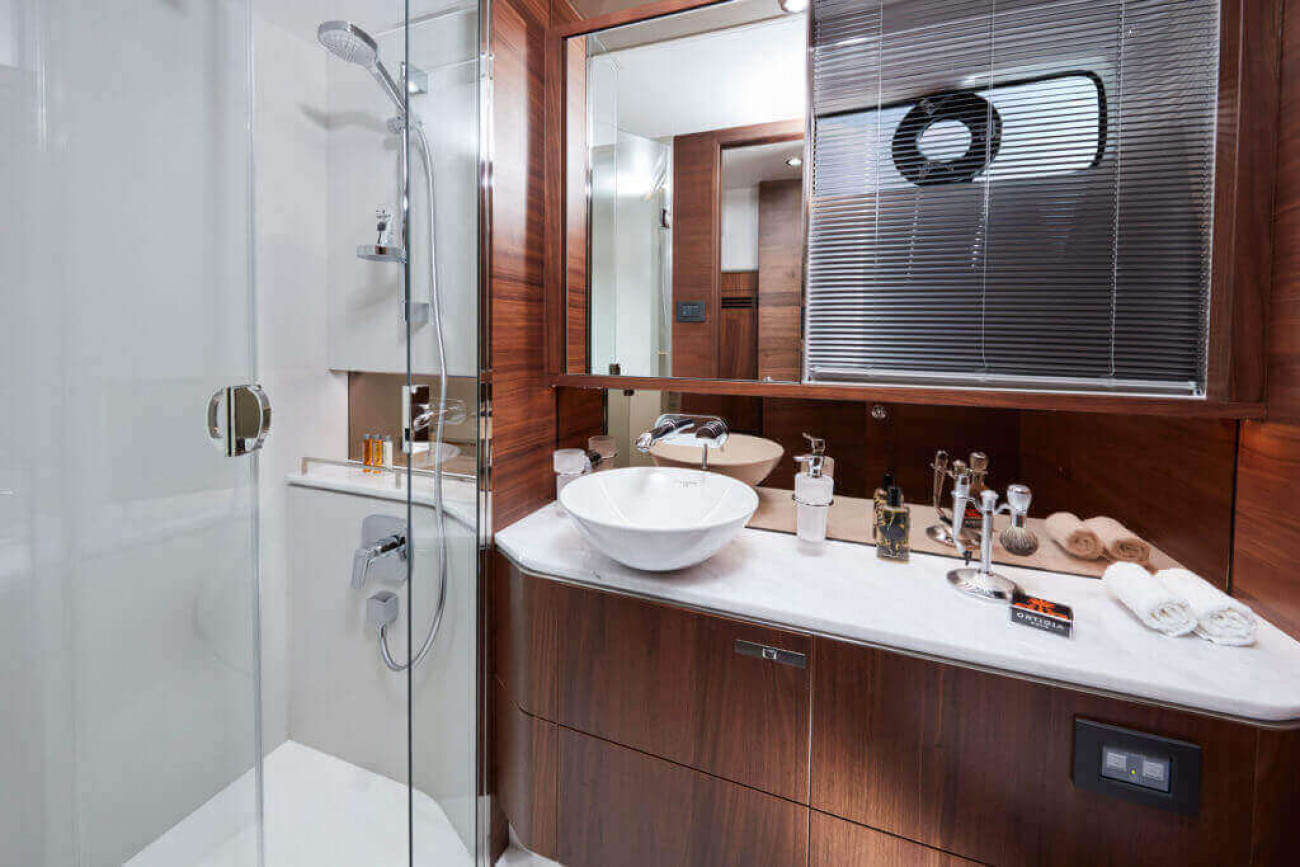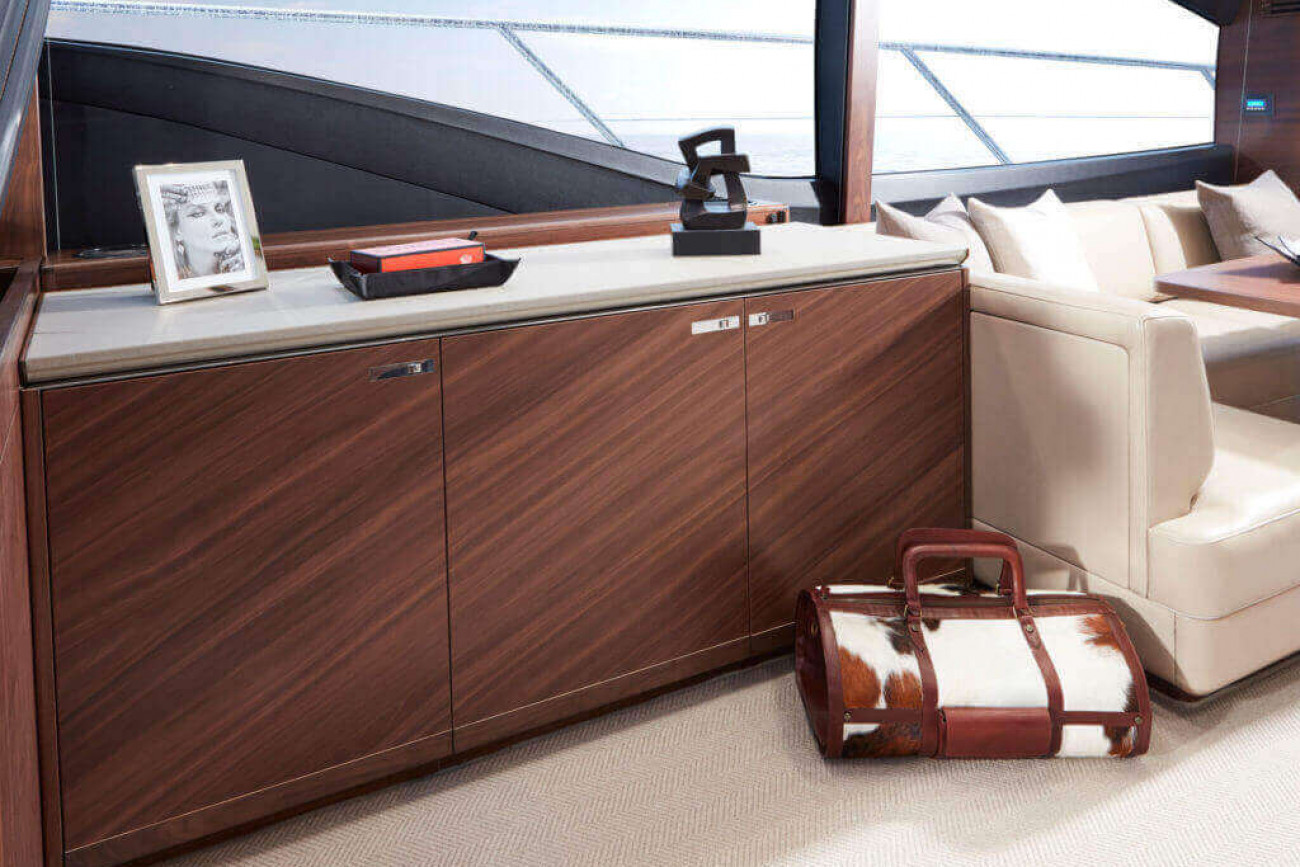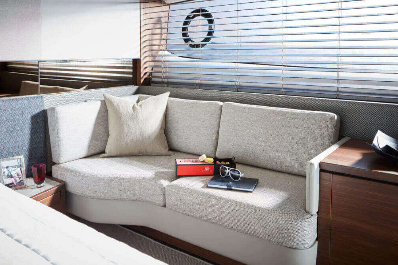 Kraftfull och spännande men ändå tidlöst elegant och sofistikerad, nya S60 är otvivelaktigt S Class. En optimerad skrovform som uppnår större effektivitet ger topphastighet på upp till 38 knop. När man ligger för ankar ger hennes generösa däck utrymme för avkoppling inklusive sittplatser och solbädd på fördäck, medan en gummibåt eller vattenskoter snabbt kan sjösättas från garaget på akterdäck. Hennes sociala huvuddäck med pentry akterut med öppen planlösning med matplats, och skjutdörrar med ett fullt öppningsbart fönster mot sittbrunn. Under däck bor sex gäster i en ensuit ägarkabin och två gästkabiner. Genom bländande ikonisk design, exceptionell ingenjörskonst och oöverträffat hantverk levererar nya S60 en oförglömlig upplevelse.