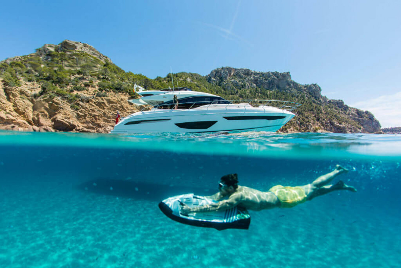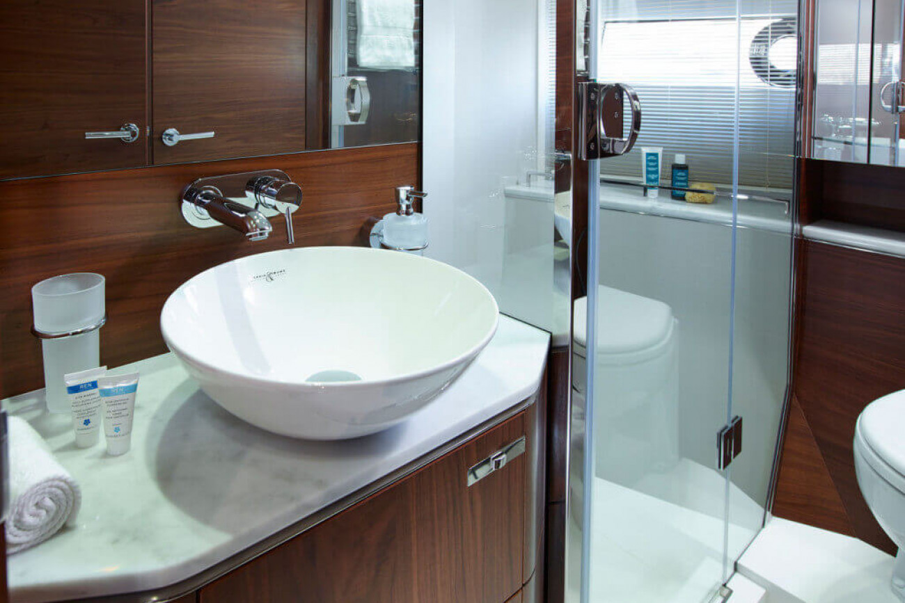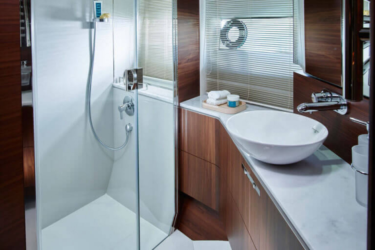 There’s an undeniable presence about the all-new S65, with her slender streamlined form that somehow also exudes a predatory air. A lightweight deep-V hull delivers on this promise with breathtaking agility up to 38 knots. When at anchor, peacefulness descends onto her generous well-appointed deck areas, which include a spacious foredeck seating area, whilst her hydraulic bathing platform and 3.3m tender garage become the perfect base for watersports. Her spacious interior features a sociable galley aft arrangement which opens out to the cockpit, whilst below deck eight guests are accommodated across four cabins, three of which are en suite.