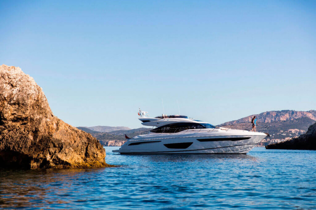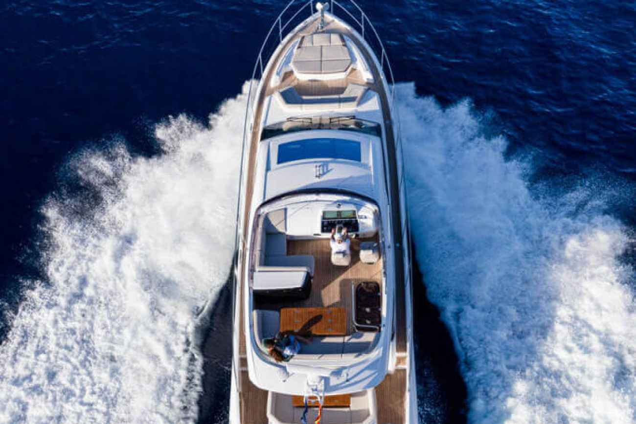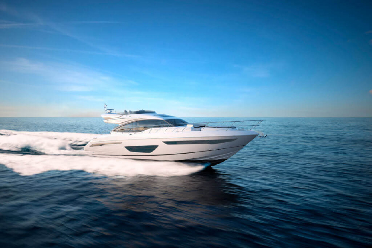 † Fart och räckvidd är uppskattade på en båt med standardutrustning och varierar beroende på skrovets renhet, akterdrevets skick, last, vatten- och lufttemperaturer, sjöförhållanden och andra faktorer. Uppskattningar ges därför i god tro men utan garanti eller några förpliktelser oss oss eller Princess Yachts International plc.
