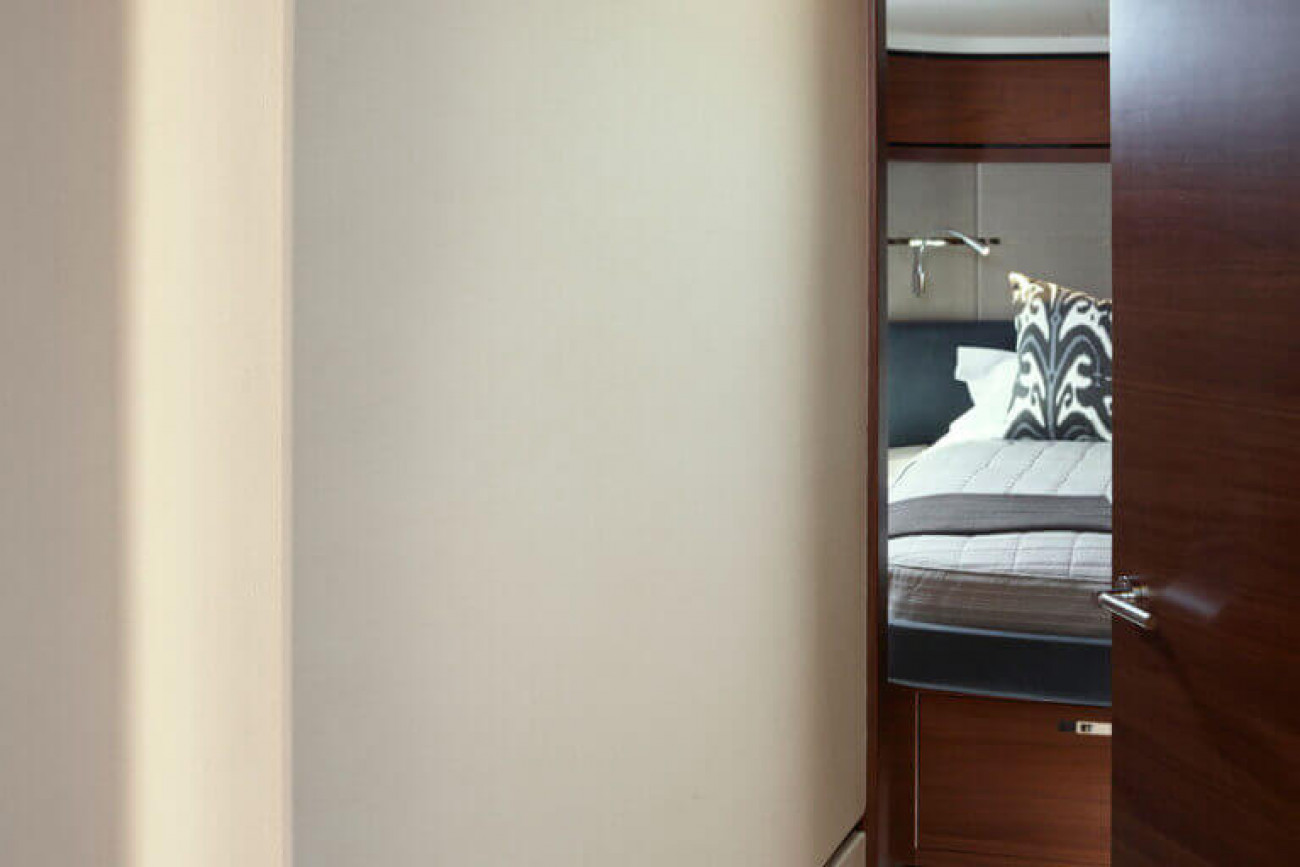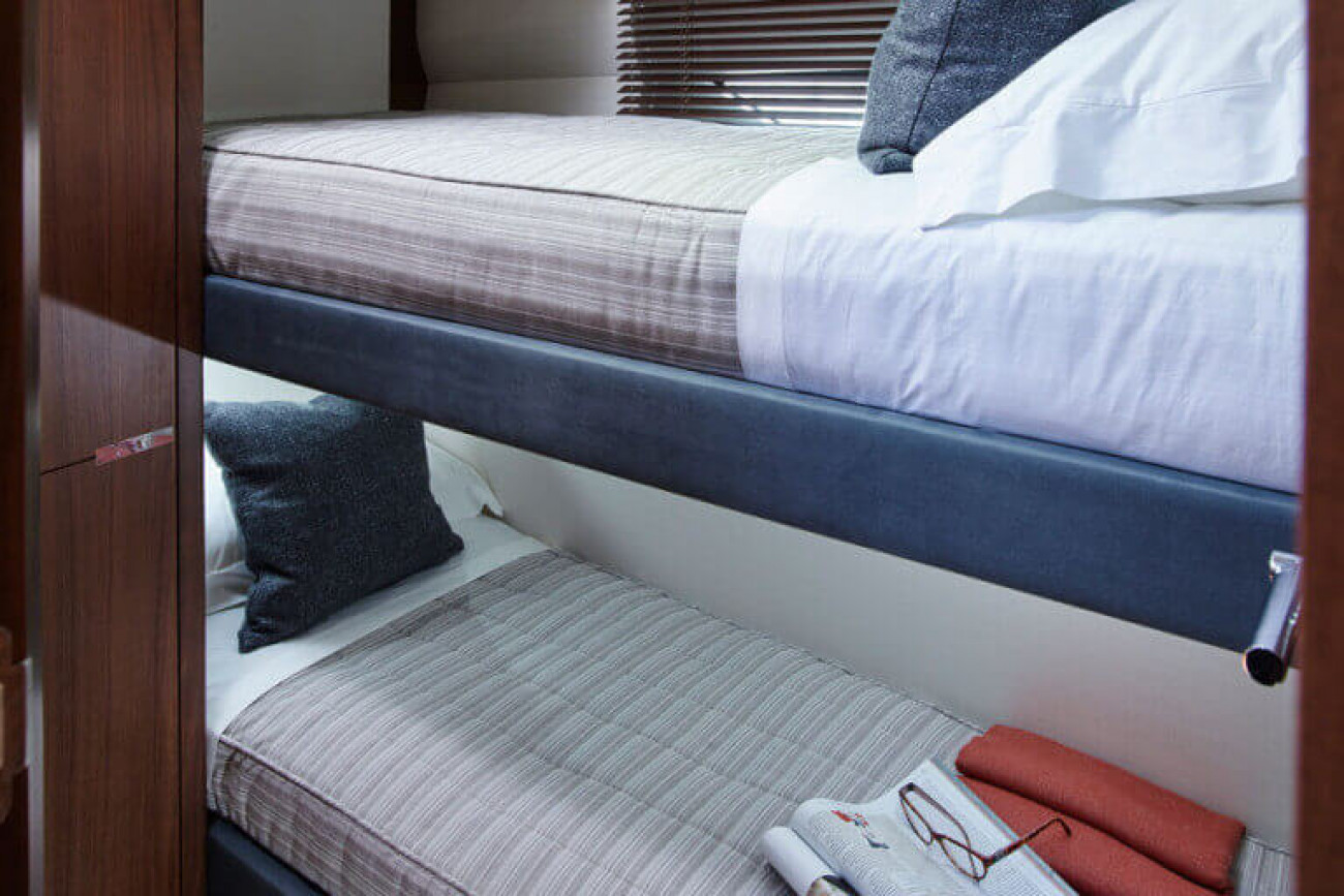 • Two single berths with drawers below with optional powered sliding conversion to double