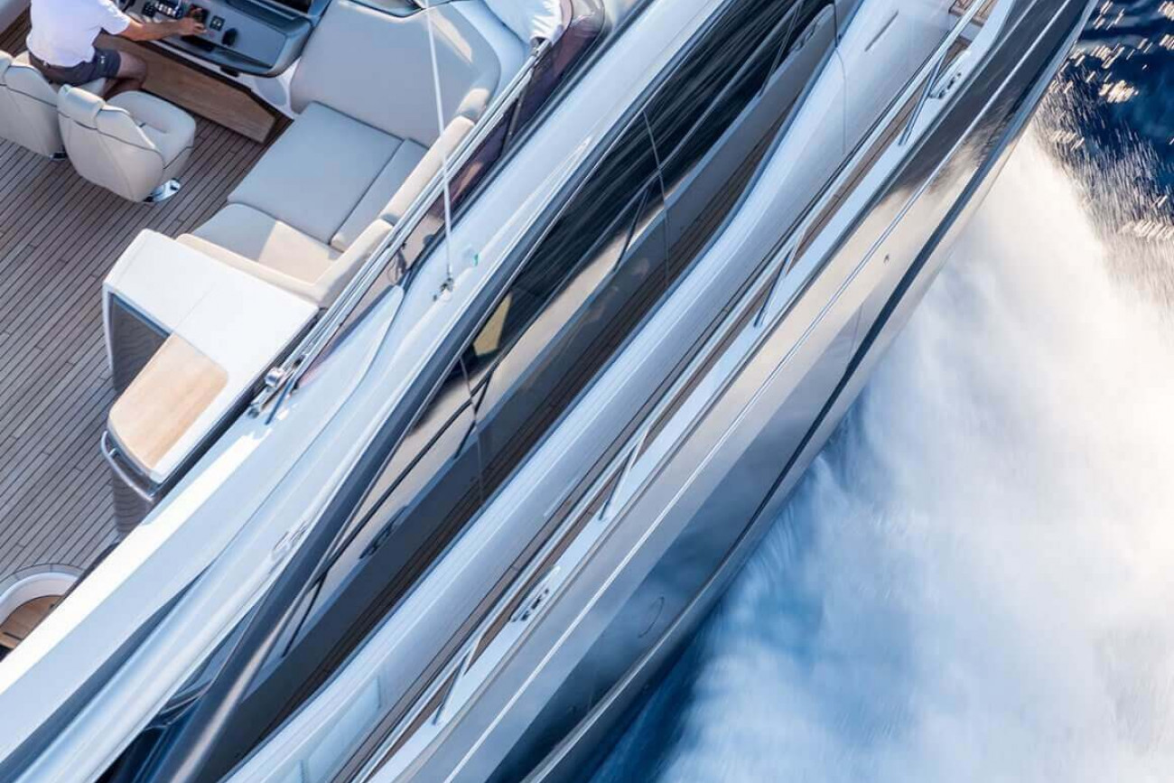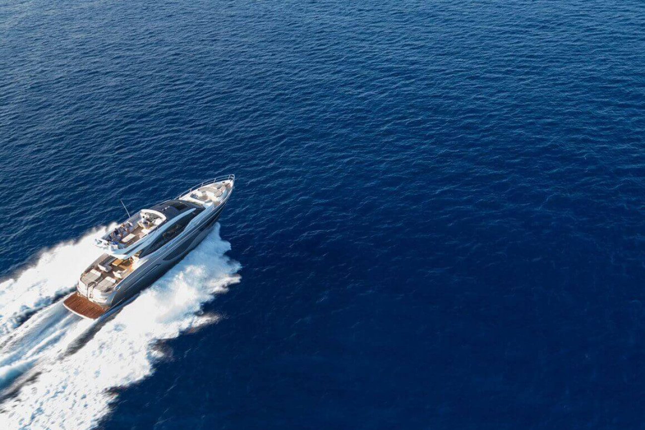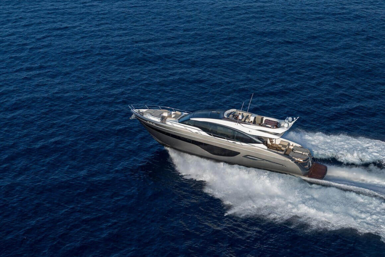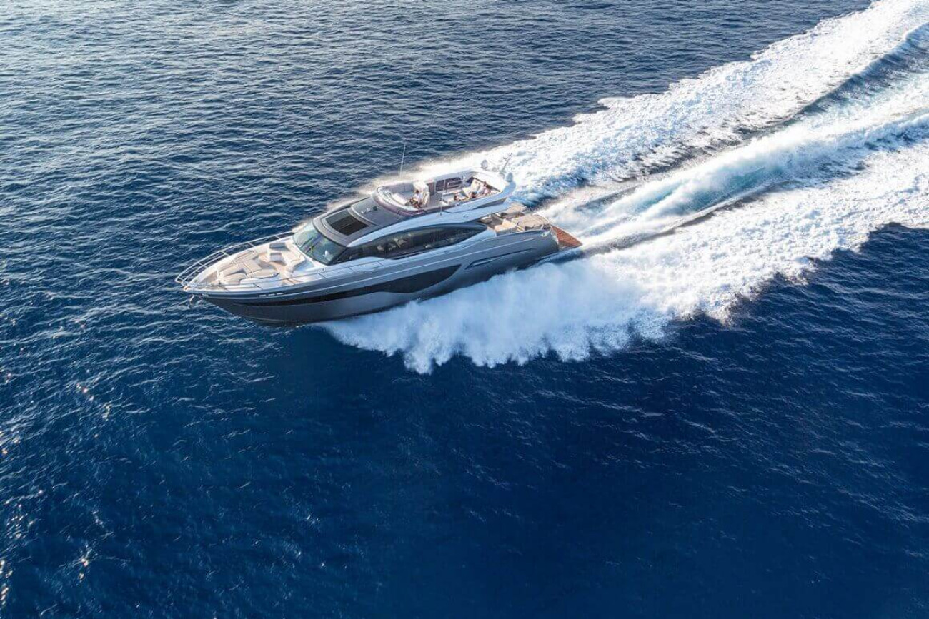 † Fart och räckvidd är uppskattade på en båt med standardutrustning och varierar beroende på skrovets renhet, akterdrevets skick, last, vatten- och lufttemperaturer, sjöförhållanden och andra faktorer. Uppskattningar ges därför i god tro men utan garanti eller några förpliktelser oss oss eller Princess Yachts International plc.