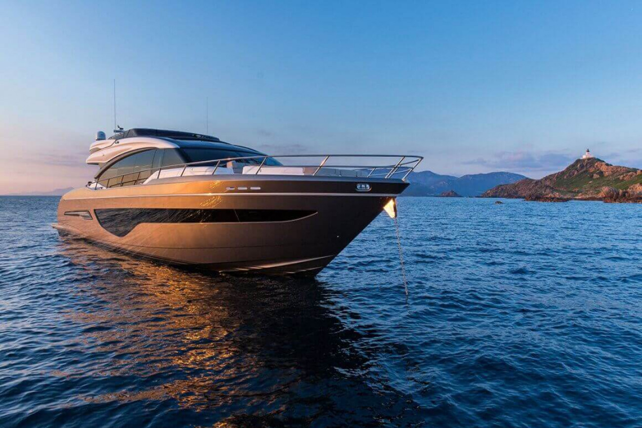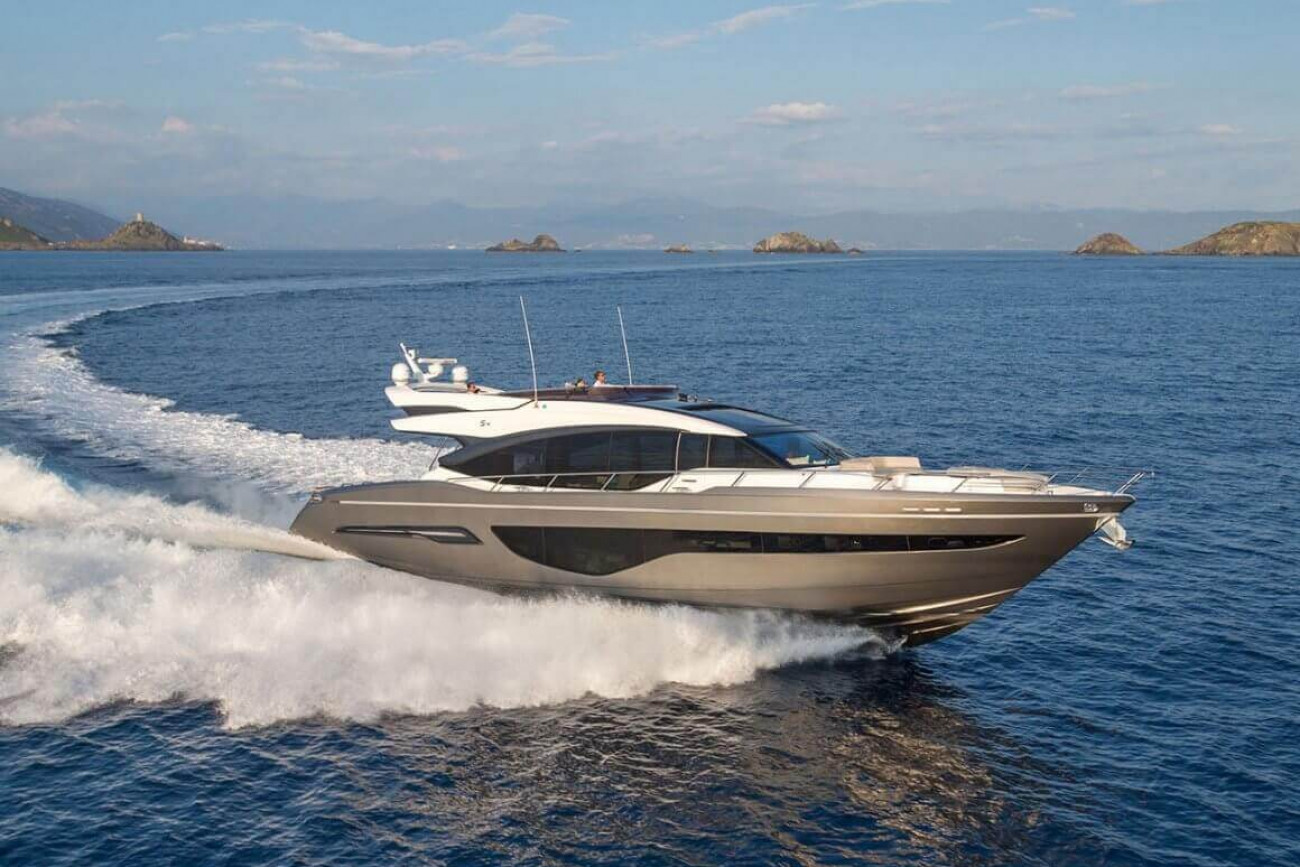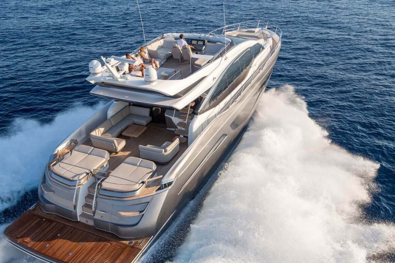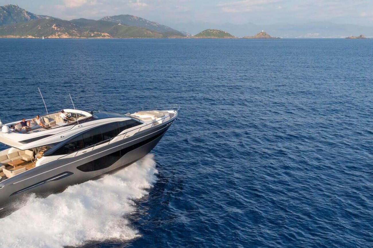 † Fart och räckvidd är uppskattade på en båt med standardutrustning och varierar beroende på skrovets renhet, akterdrevets skick, last, vatten- och lufttemperaturer, sjöförhållanden och andra faktorer. Uppskattningar ges därför i god tro men utan garanti eller några förpliktelser oss oss eller Princess Yachts International plc.