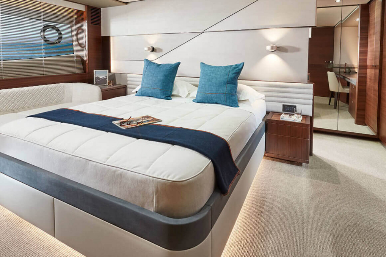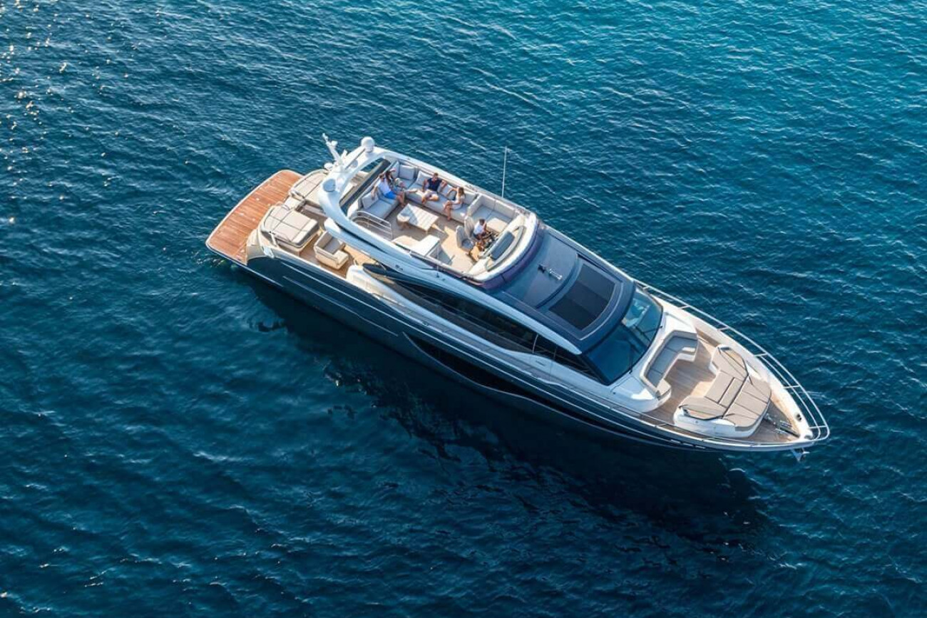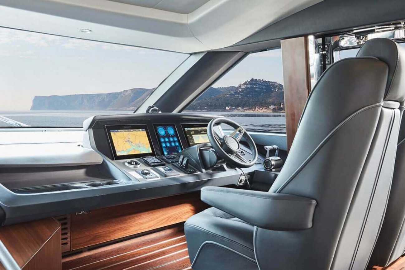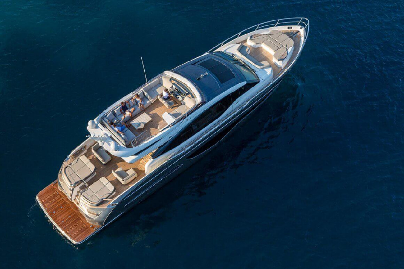 Hon fascinerar med sin mångsidighet samtidigt som hon driver fram i fängslande 39 knop, S78 är flaggskeppet i Princess S Class. Hennes sportbridge bjuder in till avkoppling med en rad exklusiva möbler att välja mellan och sittgrupper som enkelt omvandlas till solstolar. Passagen mellan hennes hydrauliska badplattform till sittbrunnen går genom mellan de dubbla soldynorna i en vackert teakbeklädd trappa. Fördäcket har sittplatser och solbäddar som kan konverteras för att skapa ytterligare säten som vetter bakåt. Ljudsystem i världsklass från NAIM Audio garanterar den perfekta atmosfären över hennes sportbridge, salong, sittbrunn och masterkabin som är standard i S78.