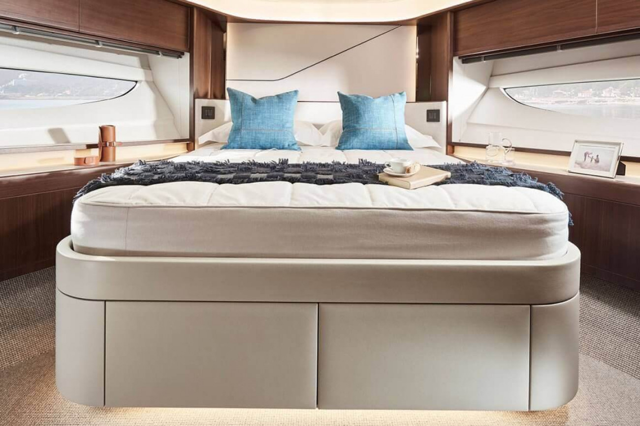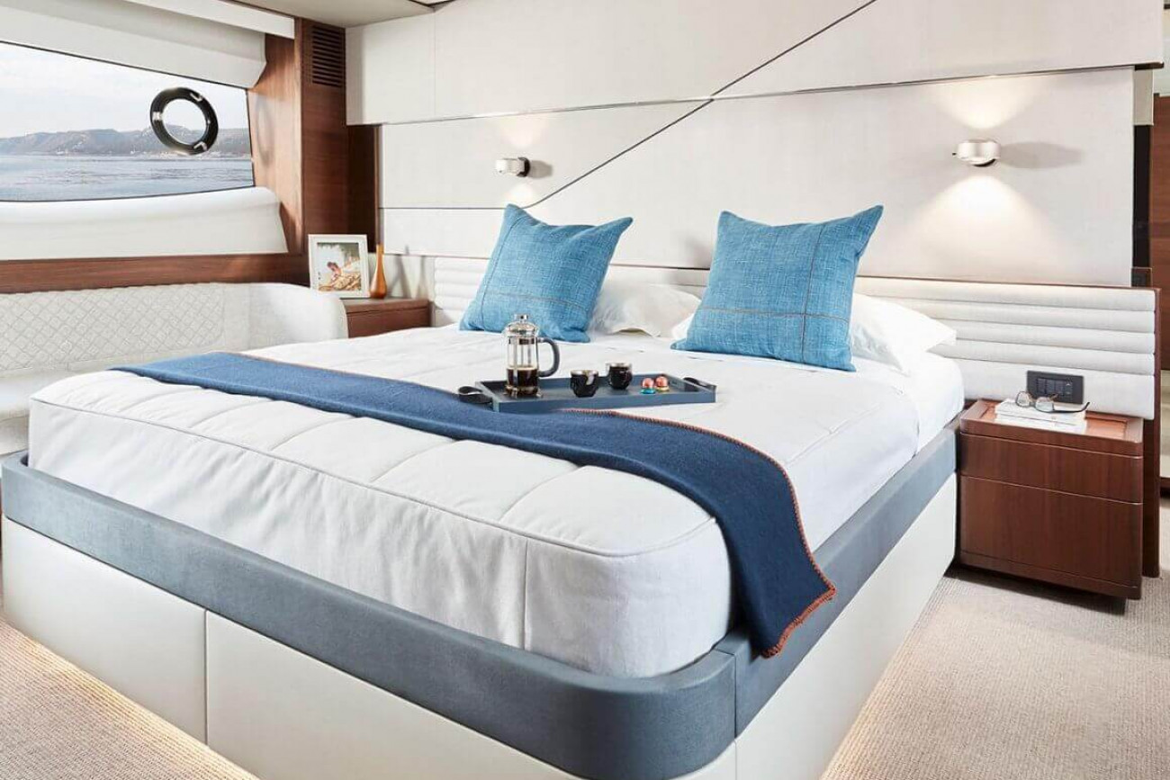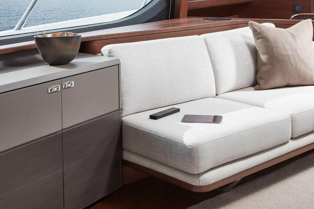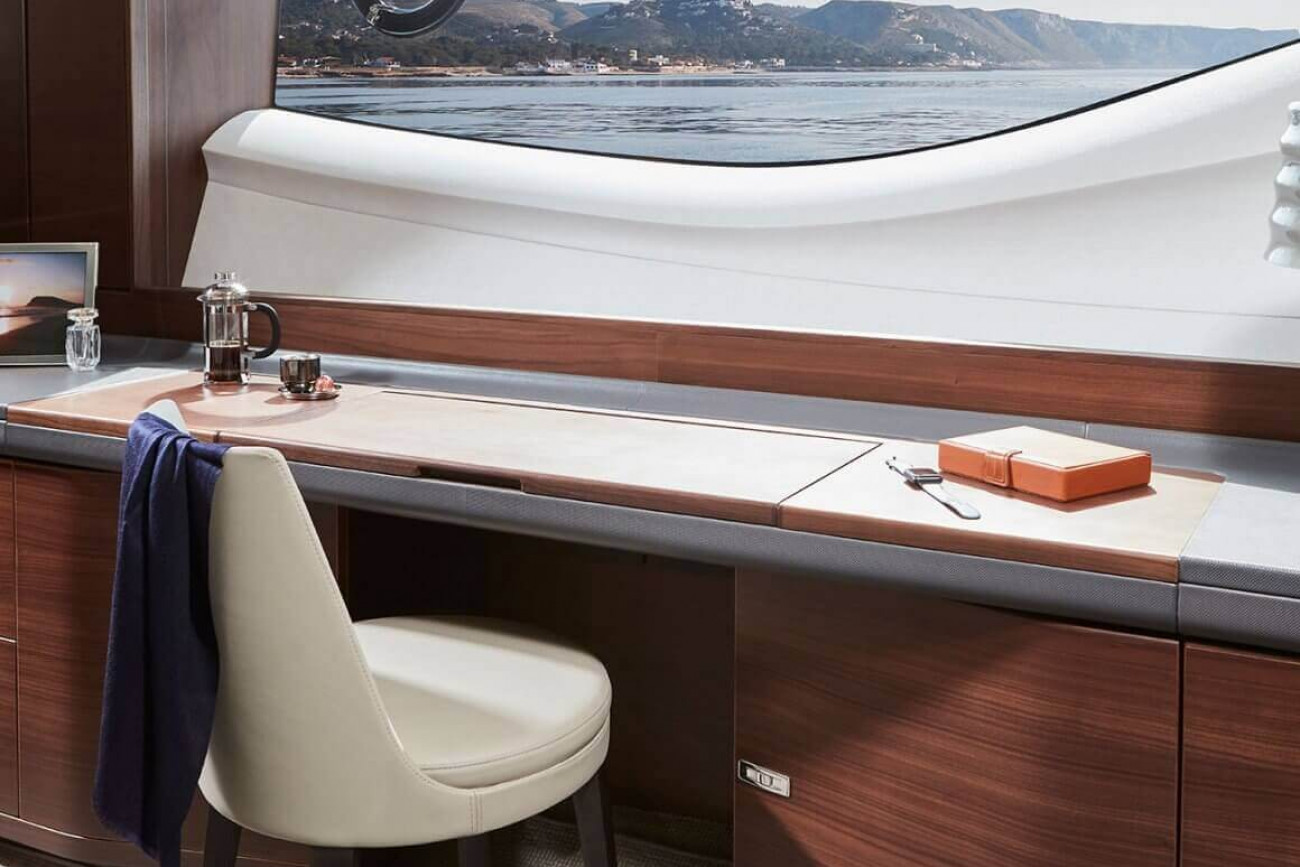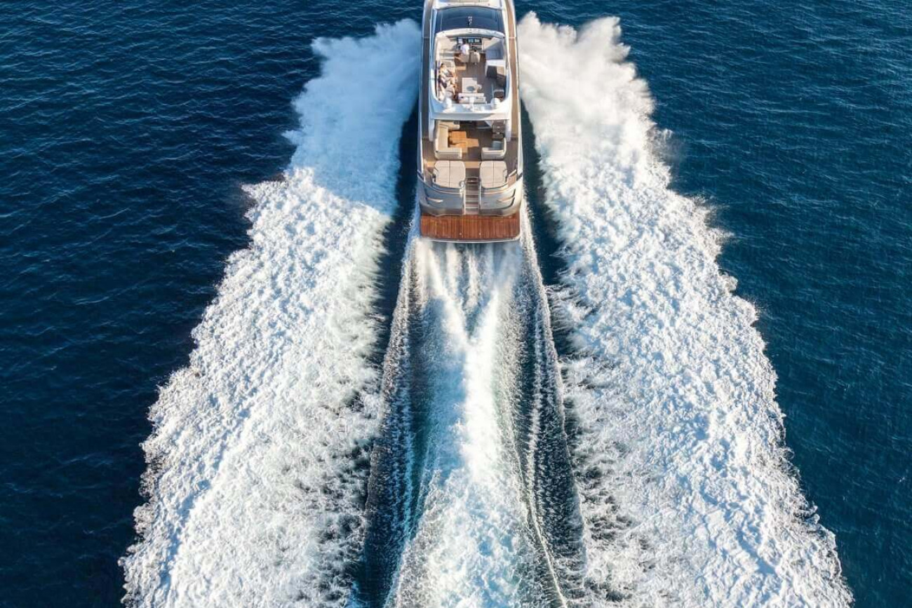 Hon fascinerar med sin mångsidighet samtidigt som hon driver fram i fängslande 39 knop, S78 är flaggskeppet i Princess S Class. Hennes sportbridge bjuder in till avkoppling med en rad exklusiva möbler att välja mellan och sittgrupper som enkelt omvandlas till solstolar. Passagen mellan hennes hydrauliska badplattform till sittbrunnen går genom mellan de dubbla soldynorna i en vackert teakbeklädd trappa. Fördäcket har sittplatser och solbäddar som kan konverteras för att skapa ytterligare säten som vetter bakåt. Ljudsystem i världsklass från NAIM Audio garanterar den perfekta atmosfären över hennes sportbridge, salong, sittbrunn och masterkabin som är standard i S78.