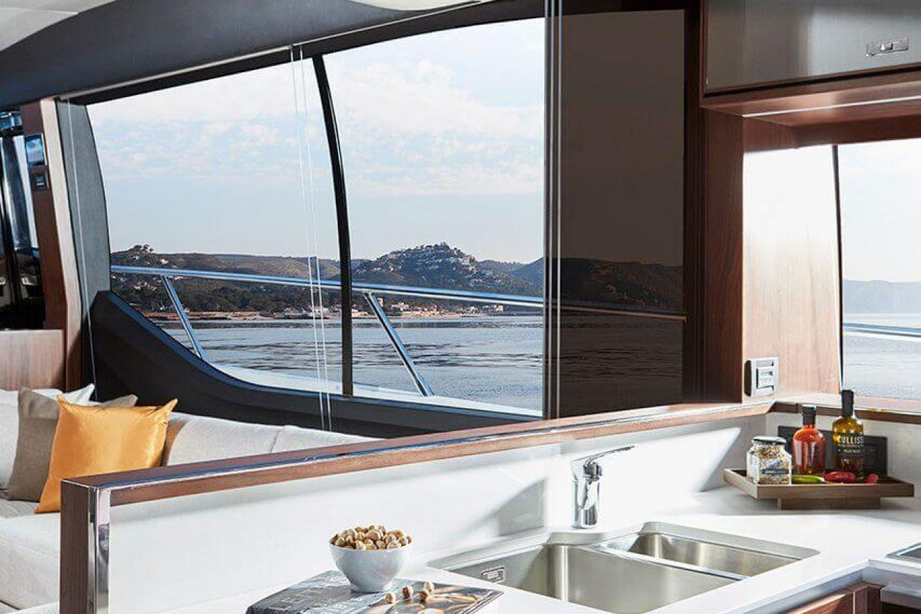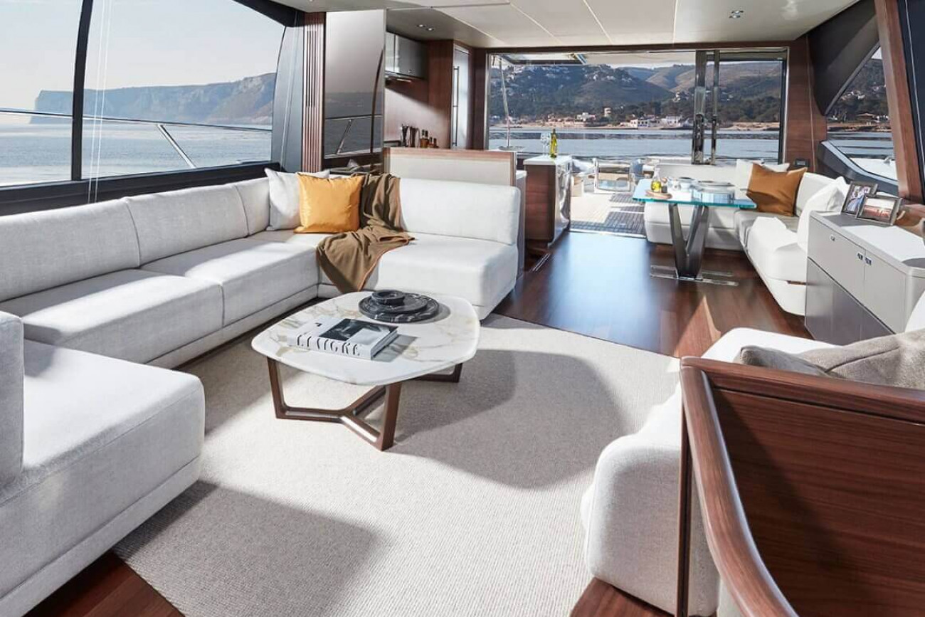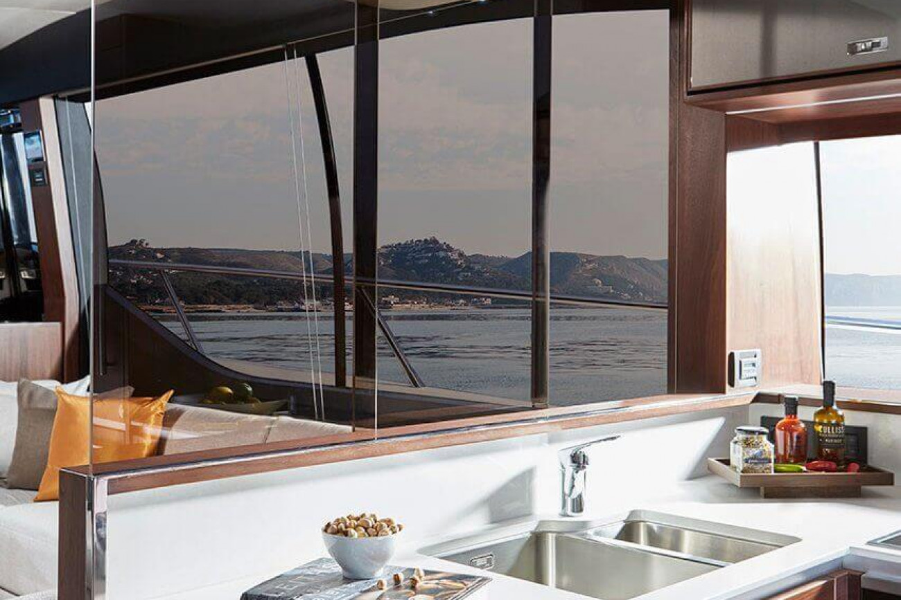 Upplev de traditionella hantverk som hela hennes integrerade interiör stolt visar upp tillsammans med effektfullt stämningsbelysta möbler, paneler och golv. En stor huvuddäckssalong förenar sömlöst med världen utanför genom sidofönster i full längd. Hennes välutrustade kök överträffar de högsta förväntningarna medan hennes matplats ger en känsla av mångsidigt utrymme med ett genialt skjutbart glasbord. Under däck kan åtta gäster njuta av fyra vackert inredda hytter med eget badrum, alla översköljda i naturligt ljus från S78:s eleganta och expansiva glas, med en ytterligare akterhytt för tillfälliga gäster eller 2-3 besättningar.
