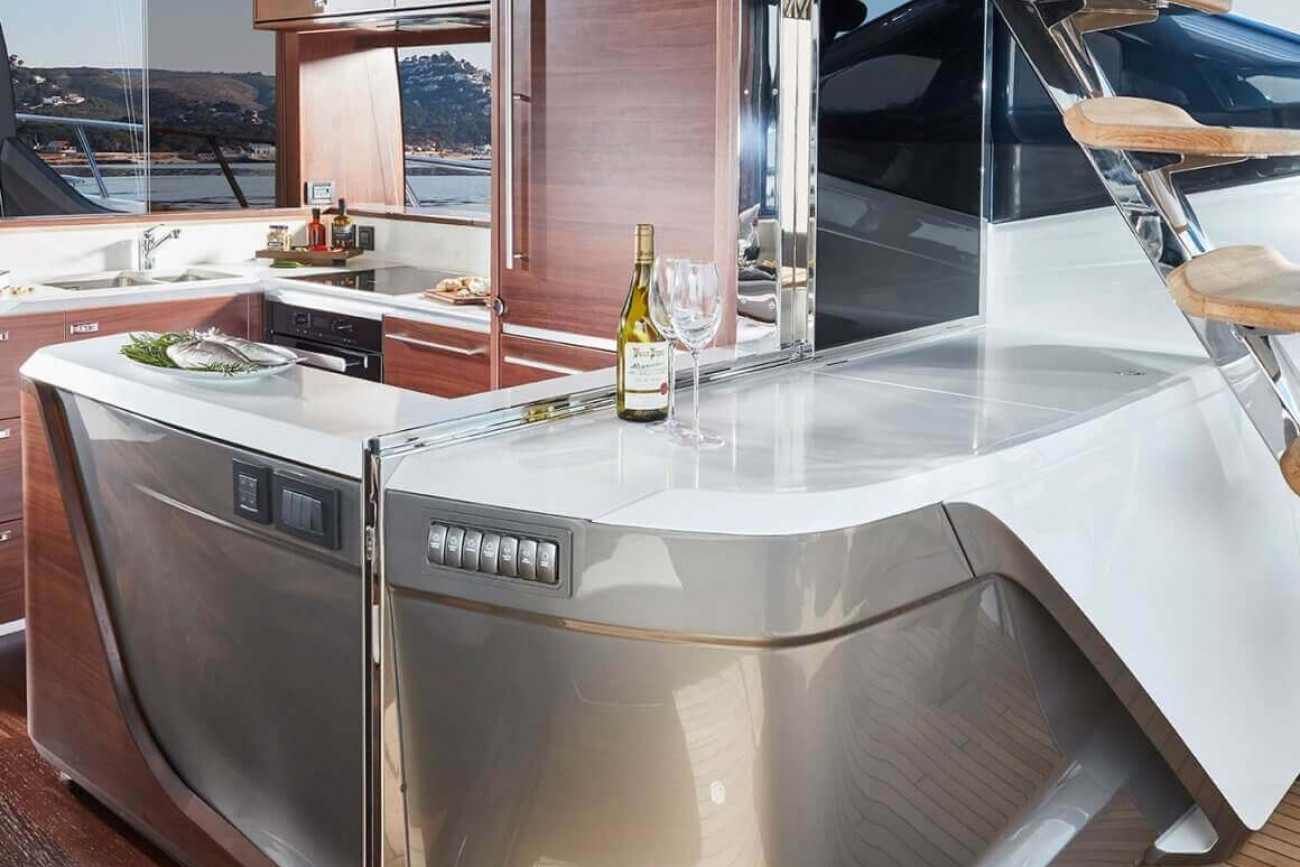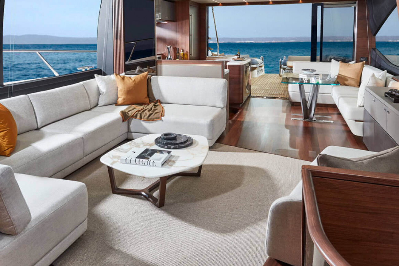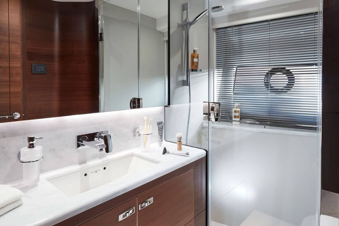 Upplev de traditionella hantverk som hela hennes integrerade interiör stolt visar upp tillsammans med effektfullt stämningsbelysta möbler, paneler och golv. En stor huvuddäckssalong förenar sömlöst med världen utanför genom sidofönster i full längd. Hennes välutrustade kök överträffar de högsta förväntningarna medan hennes matplats ger en känsla av mångsidigt utrymme med ett genialt skjutbart glasbord. Under däck kan åtta gäster njuta av fyra vackert inredda hytter med eget badrum, alla översköljda i naturligt ljus från S78:s eleganta och expansiva glas, med en ytterligare akterhytt för tillfälliga gäster eller 2-3 besättningar.