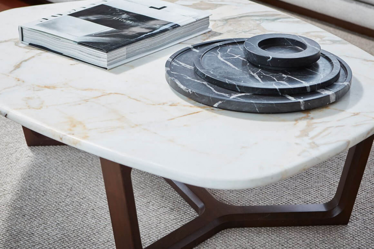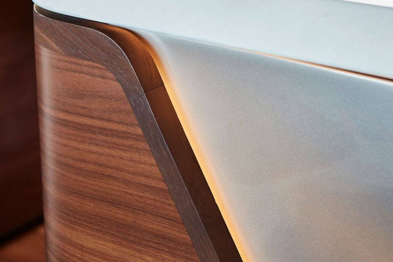 Furniture in Rovere Oak with satin or high gloss finish. Walnut or Alba Oak available as an option
